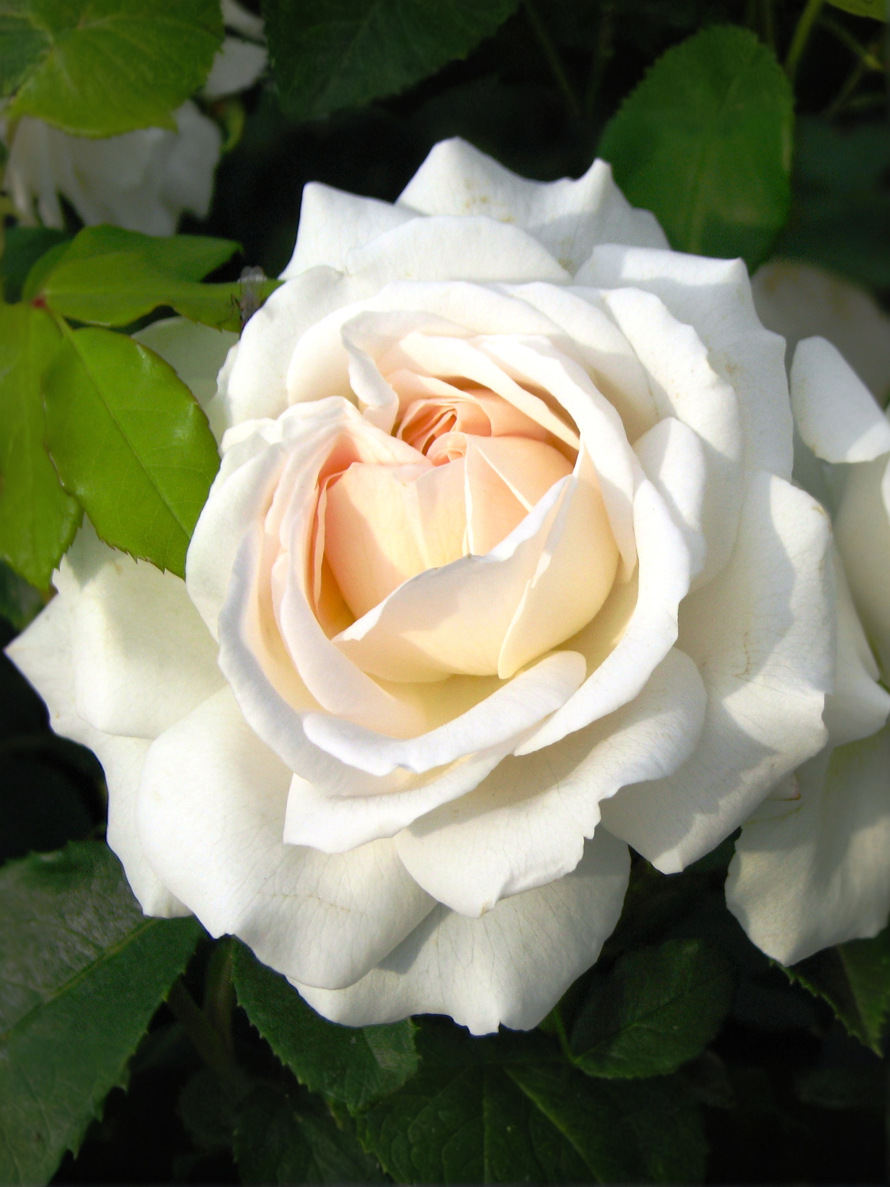 Это чайно-гибридный сорт, созданный французскими селекционерами Laperriere в 2018 году. Он отличается крупными белыми цветками с кремовыми внутренними лепестками и бледной насыщенностью цвета. Куст достигает высоты в 80-90 см и ширины в 40-60 см, что делает его подходящим для одиночных или групповых посадок. Листья темно-зеленые, крупные и глянцевые.