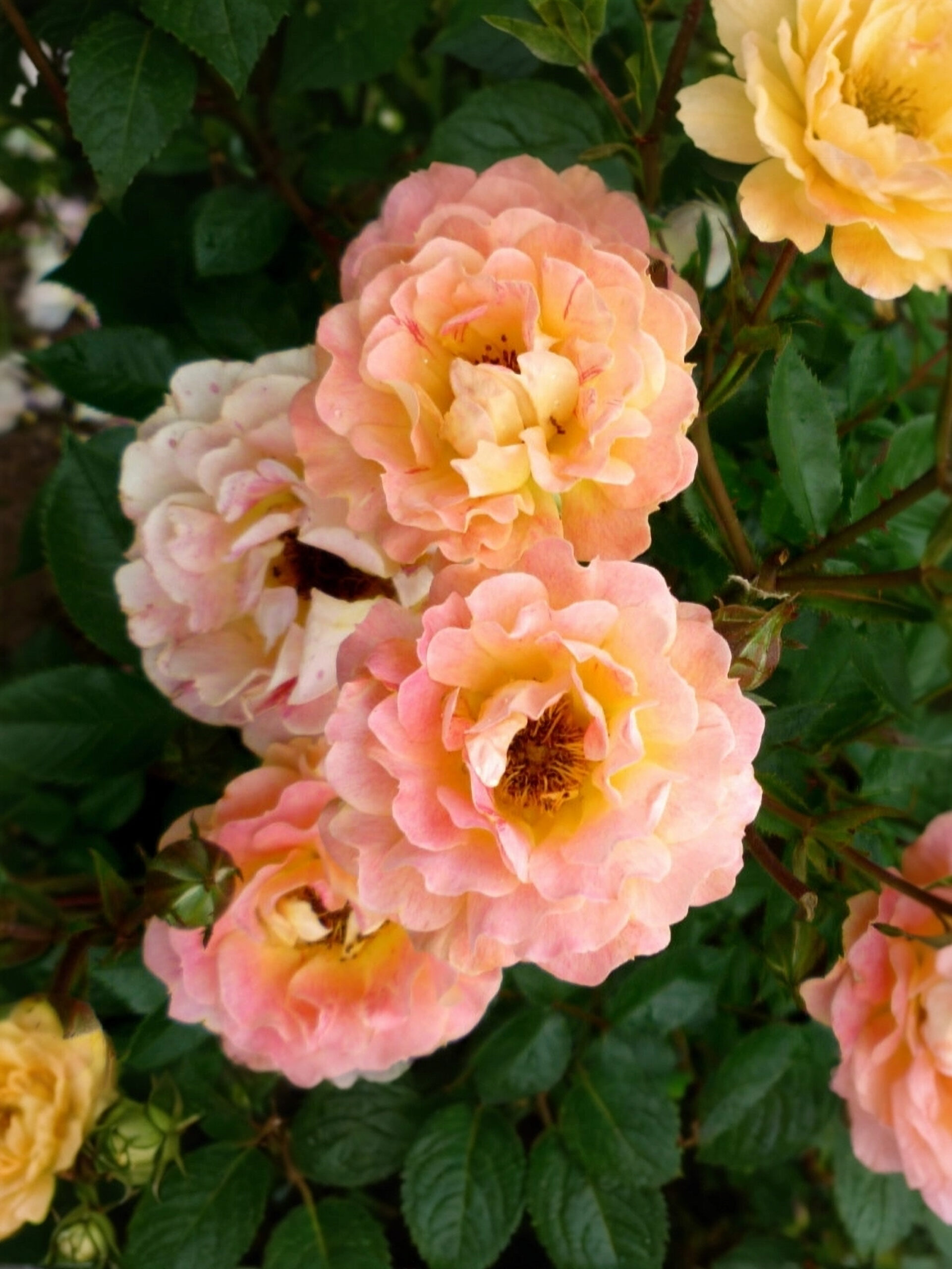 Почвопокровная роза с яркими золотисто-абрикосово-оранжевыми многочисленными цветками на крепких цветоносах. Бутоны маленькие шаровидные. Цветки диаметром до 7 см, полумахровые и махровые (16-30 лепестков). Самоочищается. Аромат лёгкий. Цветение повторное, до заморозков. Куст высотой 30-50 см , до 60 см шириной. Листва глянцевая, тёмно-зелёная, устойчивая к заболеваниям. Хорошая зимостойкость.
