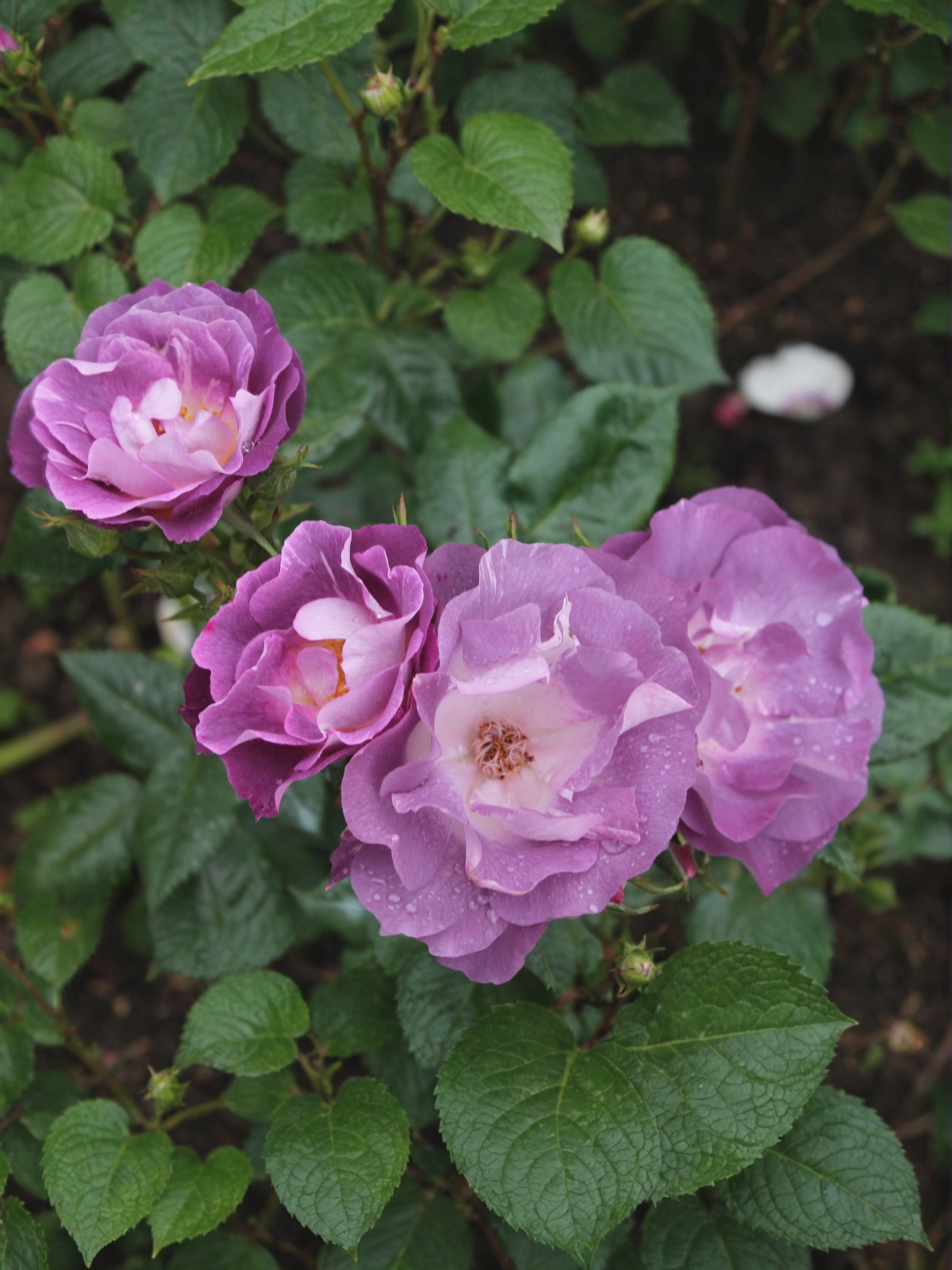 Куст у этого сорта сильнорослый, высота куста может быть и метровой (но чаще 80-90 см). Листья зеленые, средние по размеру, на стебле имеются шипы. Выращивать розу Блю Фо Ю нужно в месте, защищенном от холодных ветров. Это довольно устойчивый к болезням сорт, но при этом он боится дождей и демонстрирует необходимость укрытия. Зато спокоен в отношении жары и мороза.