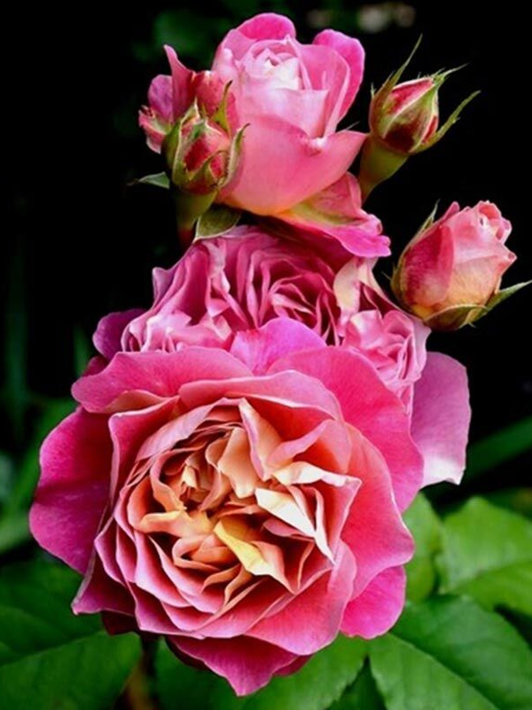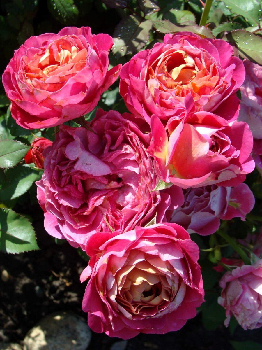Среди основных преимуществ розы можно отметить её крупные цветки, которые имеют чашевидную форму и до 60 лепестков. Окраска цветка очень насыщенная – розовая с малиновыми и лавандовыми оттенками на внешних лепестках и золотисто-желтым отливом на внутренних. Аромат цветов очень сильный и фруктовый.