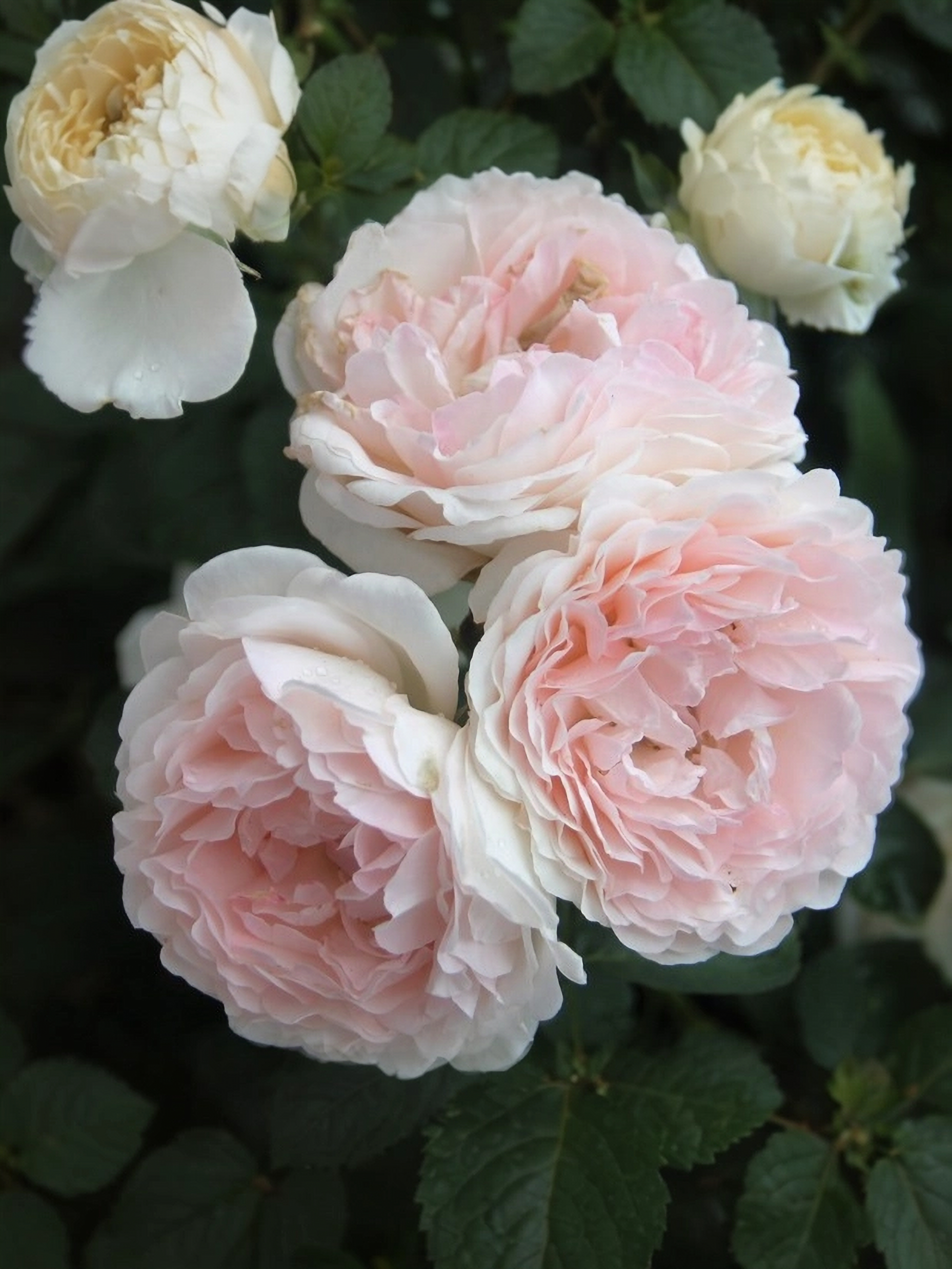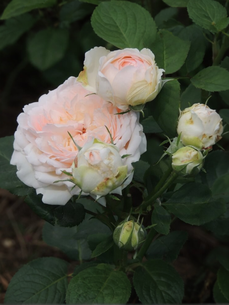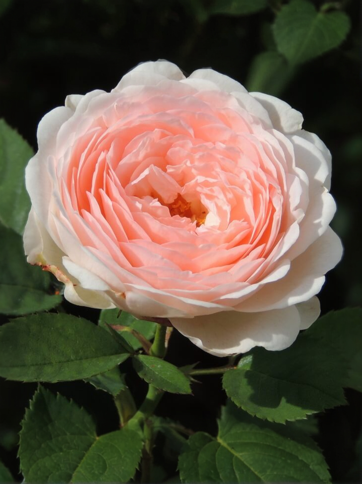 Универсальная роза с удивительным ароматом. Цветки диаметром 8-10 см, махровые (26-40 лепестков), старинной формы, квартированные, в соцветиях. Наружные лепестки белые с оттенками розового, внутренние лепестки – нежно-лососево-розовые. Аромат очень приятный. Цветёт всё лето почти непрерывно. Листва тёмно-зелёная, блестящая, с хорошей устойчивостью к заболеваниям. Куст высотой 100-120 см и шириной 100 см. Рекомендуется для посадки в розариях, где цветовая гамма переходит от розового к жёлтому. Подходит для выращивания в горшках. Цветы великолепны в срезке.