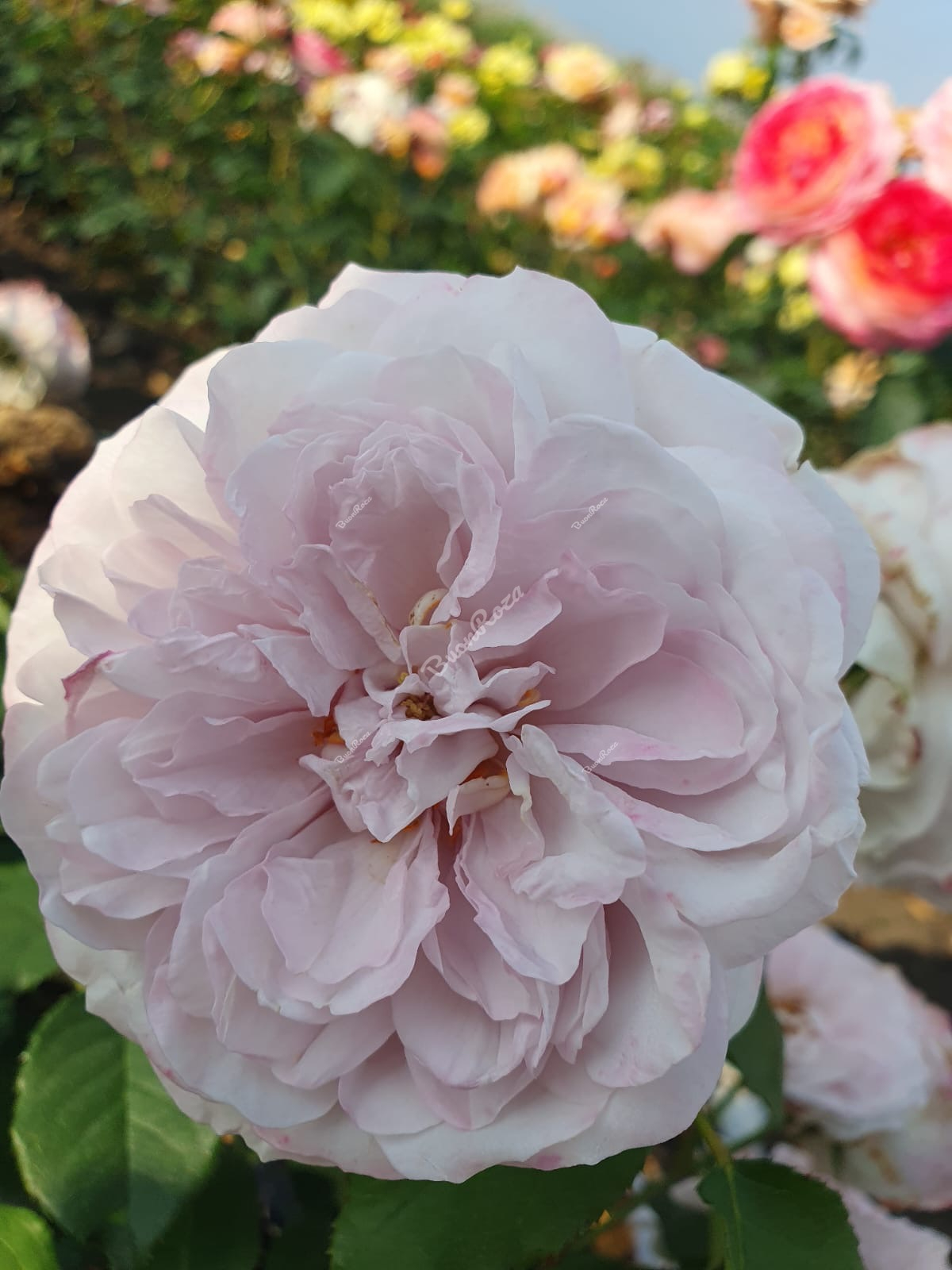 У цветка этой розы есть особенность: он сначала имеет лиловый цвет, который с возрастом постепенно переходит в бежевый, как будто загорает на солнце. Размер цветка средний, он махровый, квартированный и имеет более 41 лепестков. Аромат цветка средний.