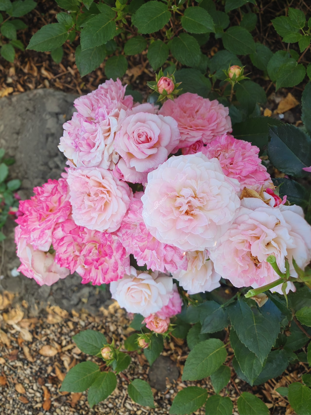 Цветки диаметром 4-6 см, густомахровые, вишнёво-красные, позже становятся розово-белыми с оттенками до абрикоса и ванили. Цветение в кистях, длительное, повторное. Куст прямостоячий, высотой 50-70 см, шириной около 50 см, листва зелёная, глянцевая, устойчивая к болезням.