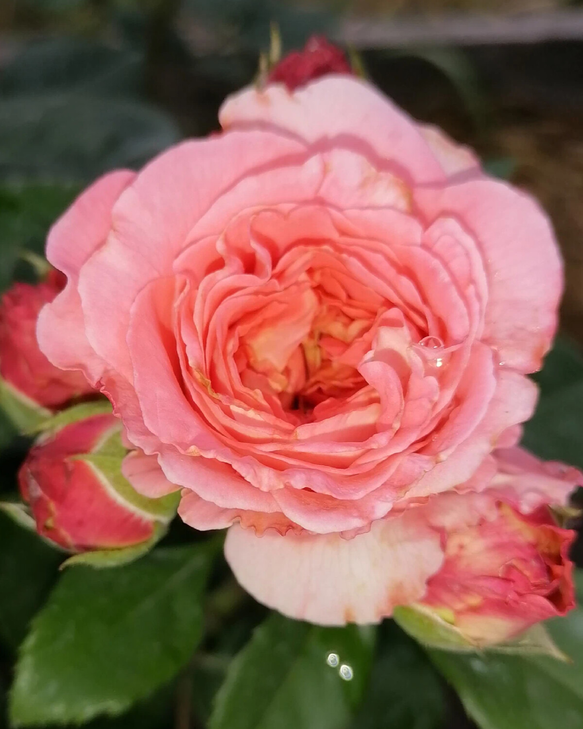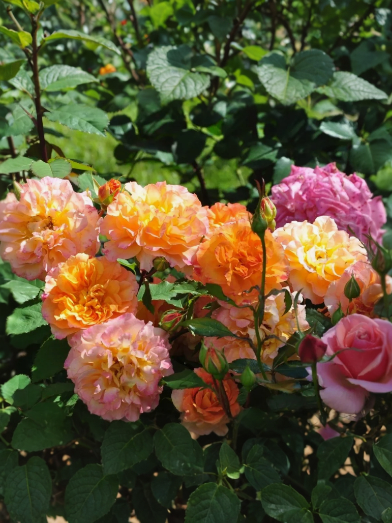 Роза с ароматными цветками в оранжевых тонах, органично переплетающих оранжевые, кораллово-розовые и желтые цвета, меняющиеся в зависимости от климата и сезона. Аромат насыщенный, фруктово-розовый. Цветение в соцветиях, повторное, почти непрерывное весь сезон. Листва темно-зеленая, глянцевая, с высокой устойчивостью к болезням. Куст вертикального роста, высотой 130 см, шириной 60 см.