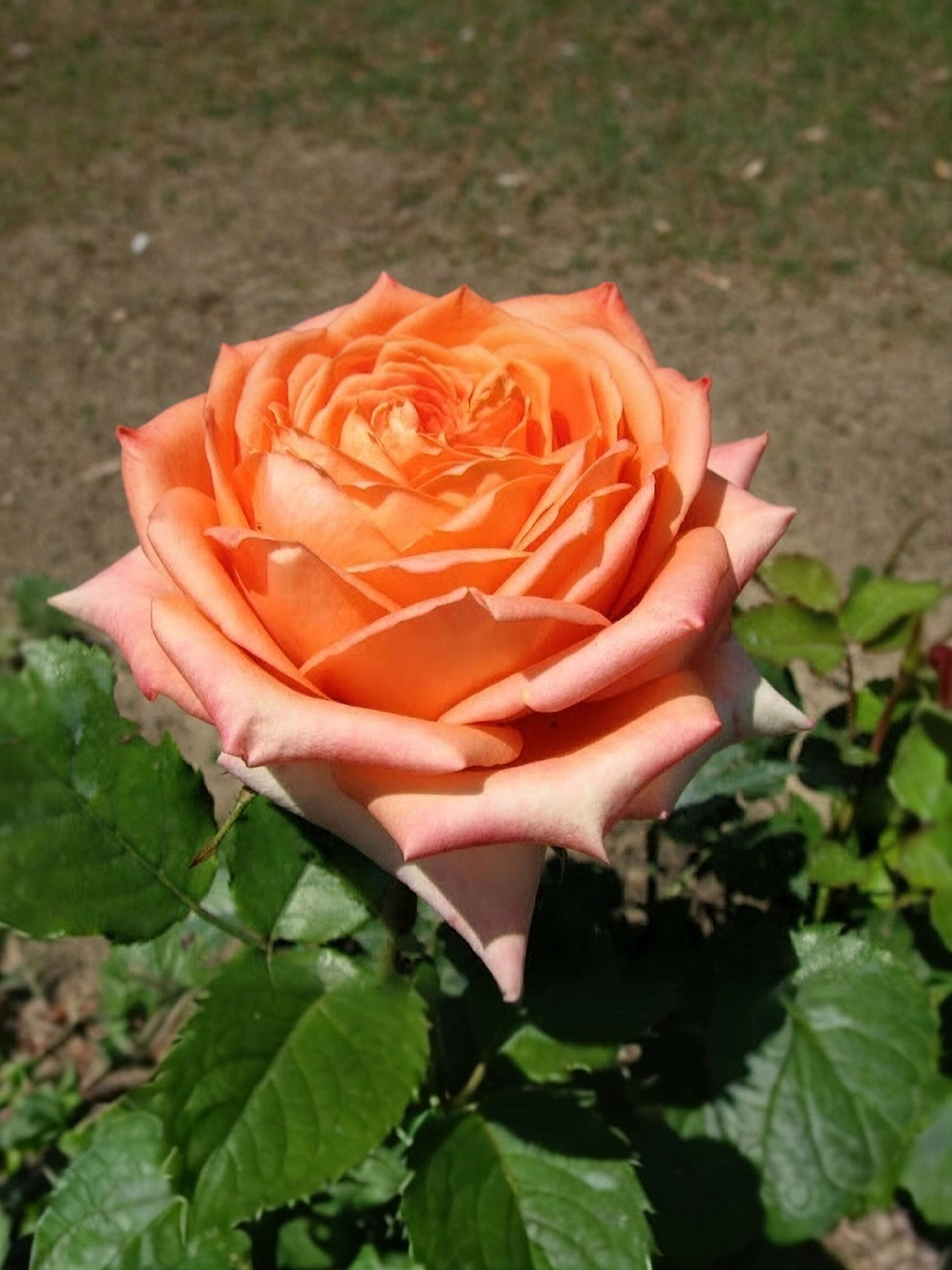 Эльдорадо — невысокий компактный кустарник, не лишенный стройности и мощи. Он образован прямостоячими побегами, покрытыми блестящими, удлиненными, ярко-зелеными листьями с глянцевым блеском. Бутоны, появляющиеся на растении, имеют классическую бокаловидную форму. На каждом стебле их наблюдается от одного до трех. В фазе полного роспуска цветки довольно крупные, розетковидные, 8−10 см в диаметре. Лепестки, число которых насчитывается в одном бутоне от 35 до 45 штук, красиво и аккуратно уложены. Окраска густомахровых цветков двойная и очень нежная. В ней гармонично сочетаются золотисто-желтый, темно-розовый и лососево-оранжевый оттенки без резких переходов. На краях лепестков заметны более светлые блики. От прелестных бутонов исходит легкий цветочный аромат. Растение начинает цвести с приходом лета и радует глаз чудесным нарядом до конца октября. При должном уходе Эльдорадо цветет обильно. Сорт относится к повторноцветущим разновидностям роз.
