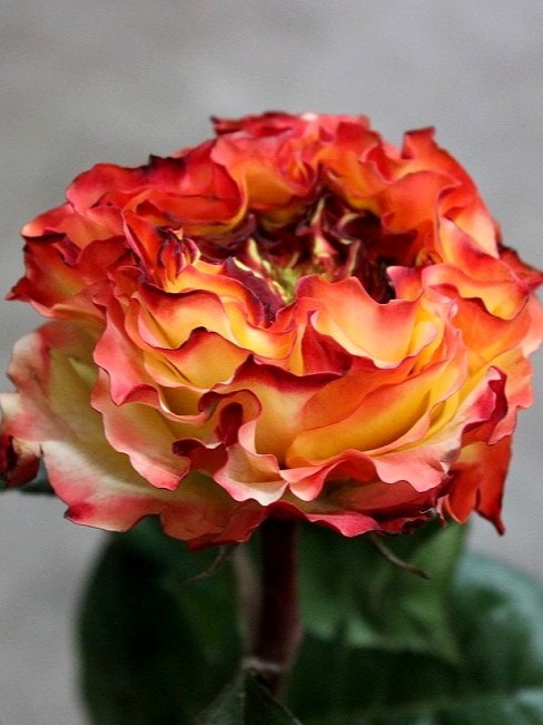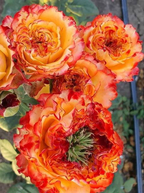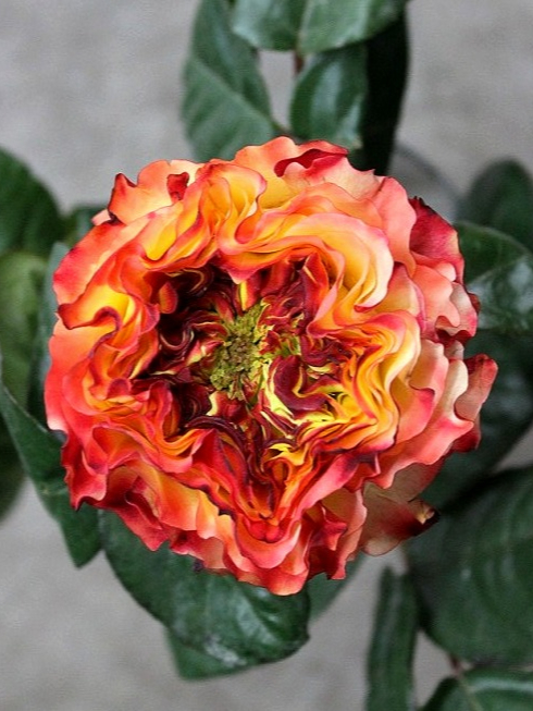 Розетковидные бутоны розы Флеш Ай туго набиты некрупными лепестками, они необычного вида и формы, словно слегка подсохли. На некоторых присутствует тонкая окантовка более темного цвета, создающая эффект «поджаривания». Появляются на побегах по 1 шт. Размер цветка в диаметре от 5 до 8 см. Минус — отсутствие аромата.