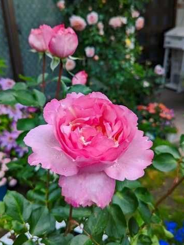 Крупные, глубоко-чашевидные цветки с насыщенным цветочно-фруктовым ароматом. Лепестки нежно-розовые с более яркой окантовкой, по мере отцветания приобретают серебристый оттенок.