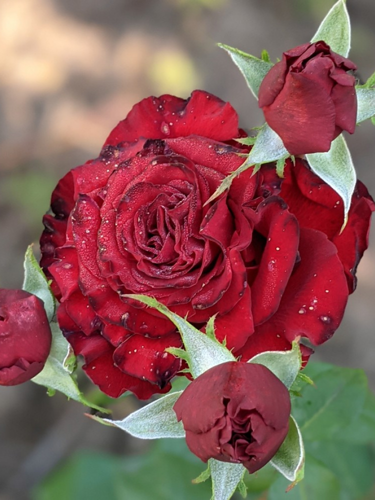 Хартс – это компактная и невысокая роза с прямостоячими стеблями, вырастающими в высоту до 100–120 см. Если кусты не обрезать, то они становятся слегка раскидистыми. Характеризуется розовый кустарник тонкими, но прочными стеблями древесного цвета, отсутствием шипов и умеренно-загущенной кроной, состоящей из некрупных темно-зеленых матовых листьев с заметными бордовыми прожилками. Ширина куста средняя: до 60–80 см в диаметре. В весенний период на идеально ровных и удлиненных цветоносах формируются одиночные бутоны.