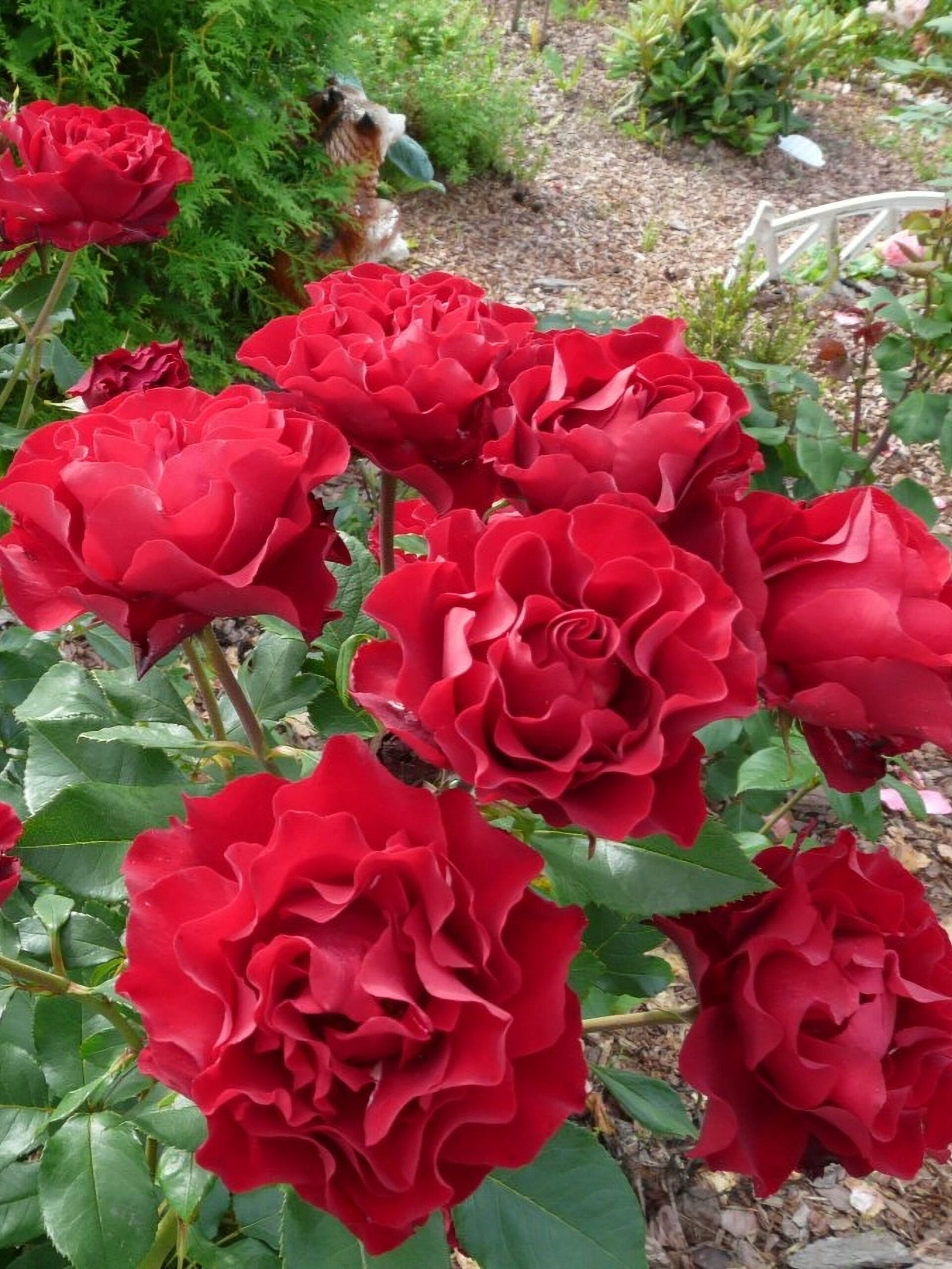 Этот сорт соблазняет крупными одиночными цветками насыщенного красного цвета с черным бархатным налетом, благодаря чему на оборотной стороне лепестков появляются золотистые отблески. Необычайно продолжительное цветение.