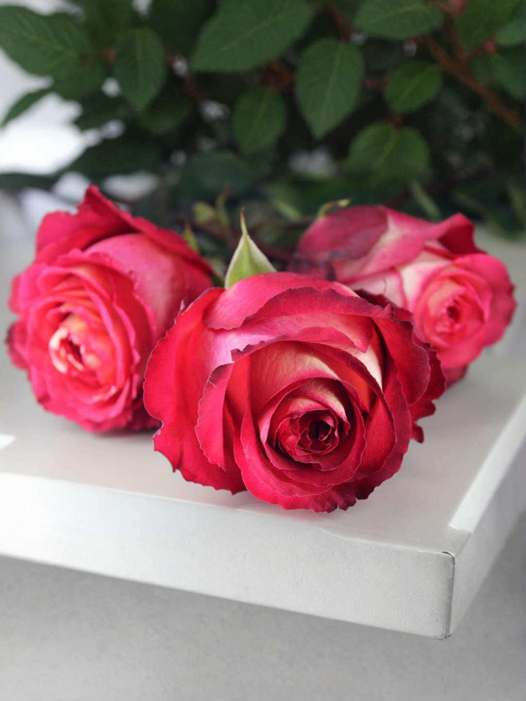 Прямостоячий куст достигает в высоту более 1 метра, выпуская до 3 бутонов сразу. Одна такая ветка – просто полноценный букет. В ширину куст разрастается до полуметра. Появившиеся на нем цветы отличаются исключительной окраской. Бледно-вишнёвые бутоны с белой серединкой распускаются в изумительные цветы градиентной окраски. На лепестках с четкими прожилками розово-лососевый цвет плавно переходит в насыщенный вишневый. Каждый цветок состоит из 40-45 лепестков. Яркая двухцветная окраска гармонично струится по лепесткам, как перетекают в едином потоке струи водопада Игуасу. В диаметре махровые цветы достигают 10 см. Роза источает слабо выраженный аромат.