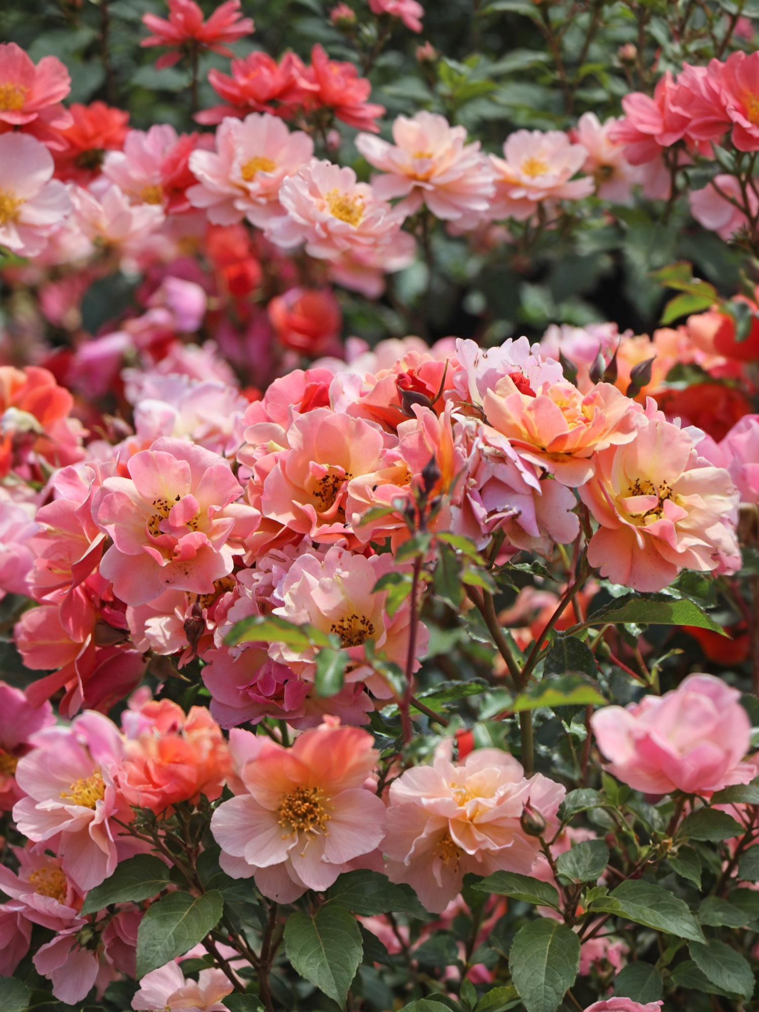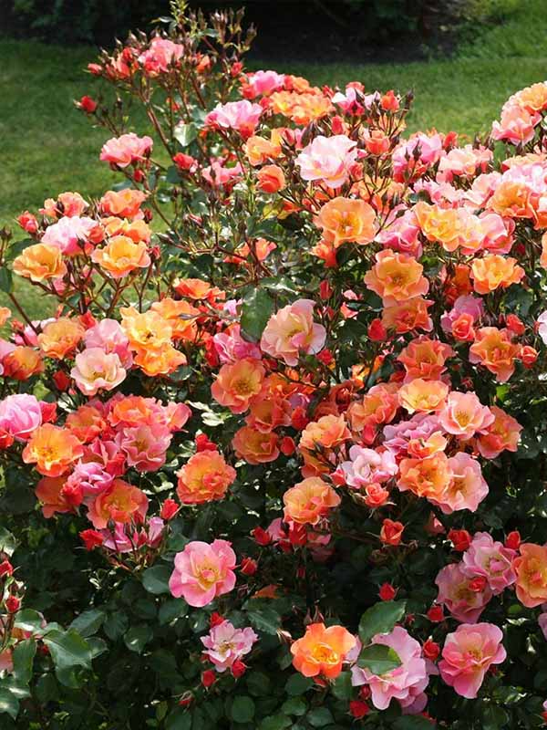 Цветки полумахровые, диаметром до 6 см, бронзово-оранжевые, с возрастом выгорающие до персиковых тонов, самоочищающиеся. Цветение очень обильное, в крупных соцветиях. Листва средне-зелёная, мелкая, блестящая, с высокой устойчивостью к болезням. Благодаря высокой устойчивости к заболеваниям и прекрасному цветению этот сорт розы является отличным вариантом для высадки небольшими группами или в массивы.