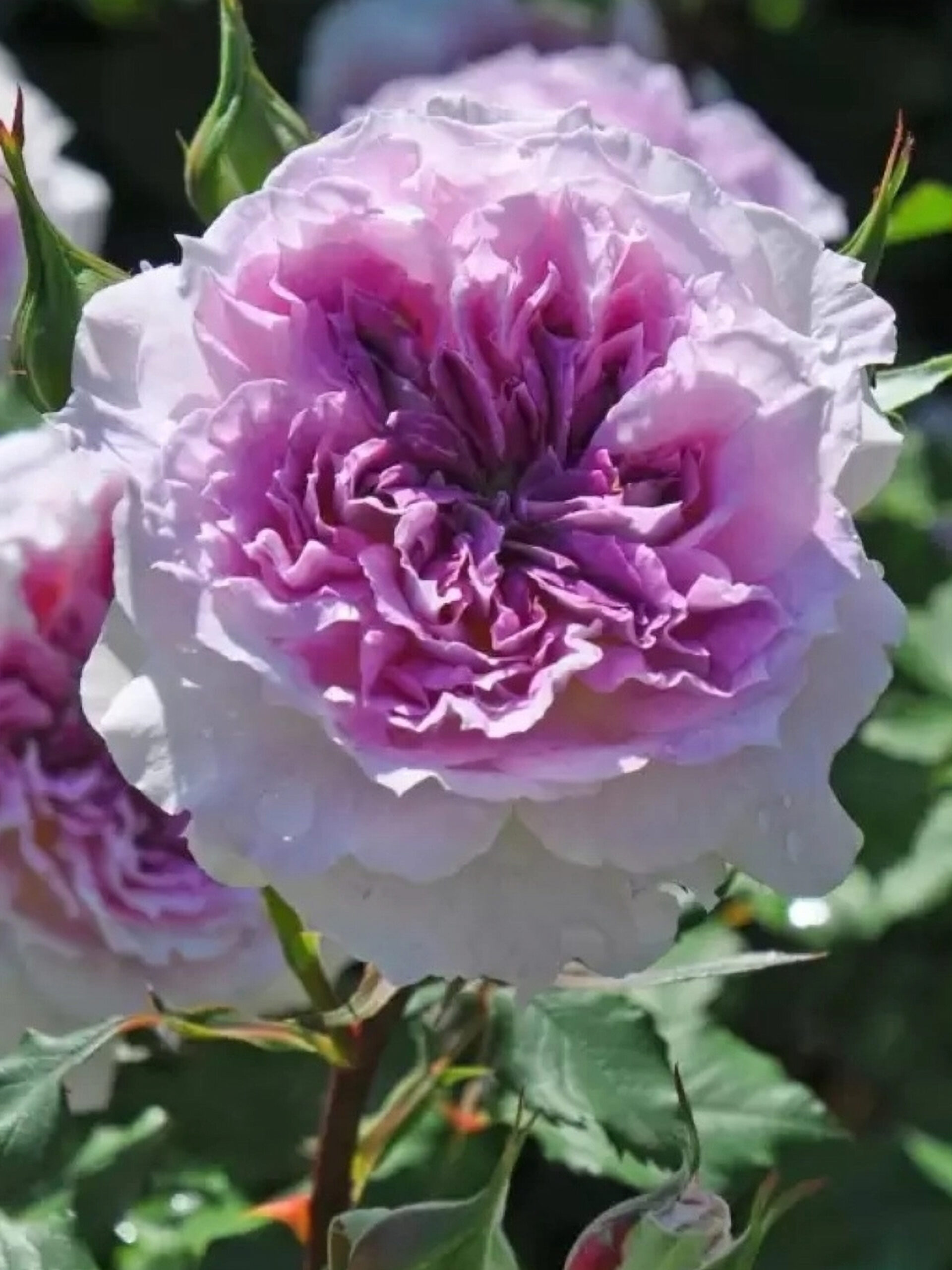 Куст вертикального роста, высотой от 90 до 120 см, побеги с шипами. Листва зеленая, матовая, устойчивая к черной пятнистости и мучнистой росе.