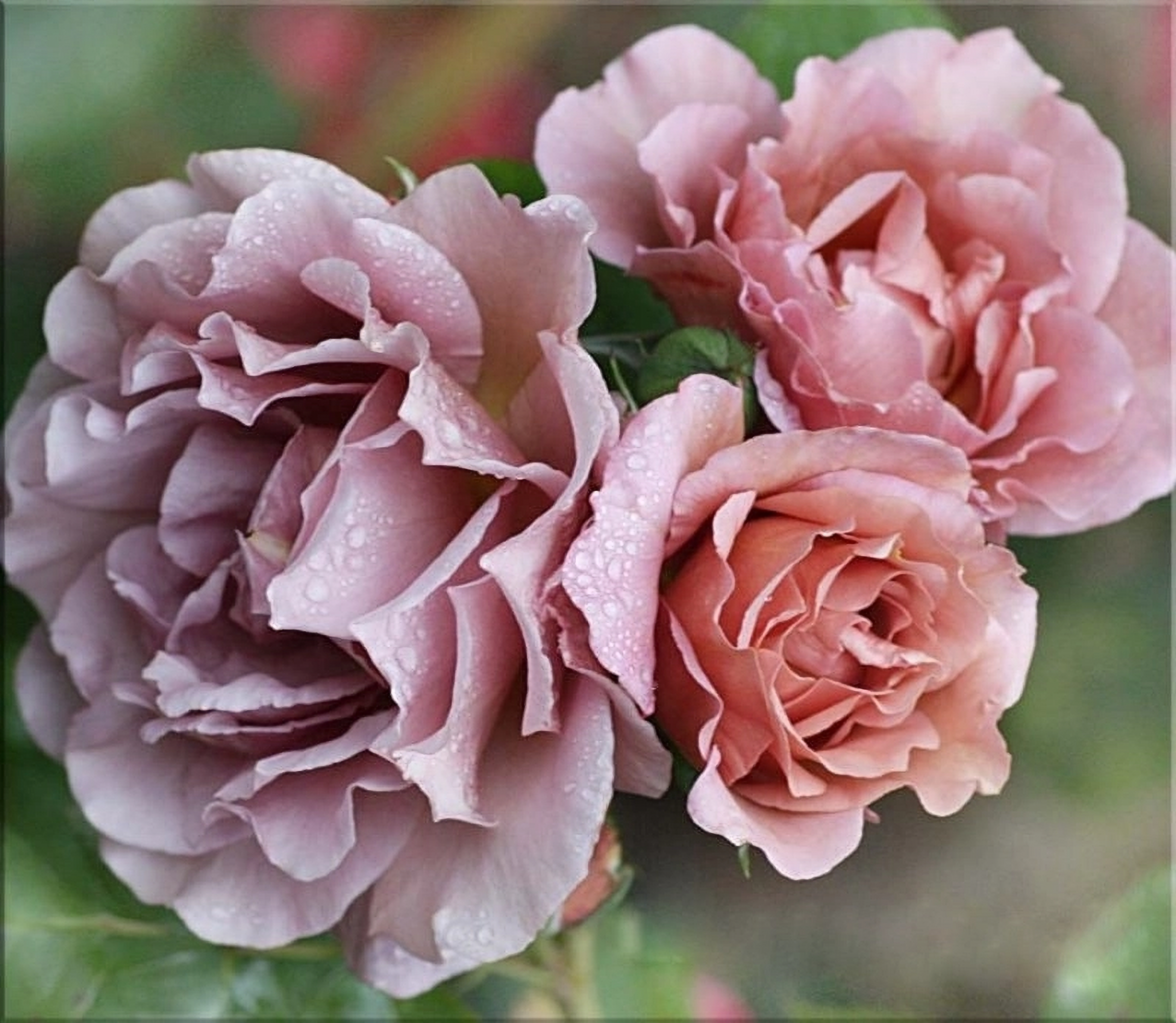 Цветки сиренево-розовые с оттенком капучино коричневого цвета. Внешние лепестки и кончики каждого лепестка, как правило, лавандовые, а внутренние лепестки и основания лепестков имеют оттенки шоколада, смешанными с оранжевыми, кофейными и серыми тонами, к тому же в зависимости от погоды и возраста цветка его окраска постоянно изменяется. Цветение в кистях по 5-10 штук, повторное. Куст раскидистый, колючий, листва светло-зелёная.