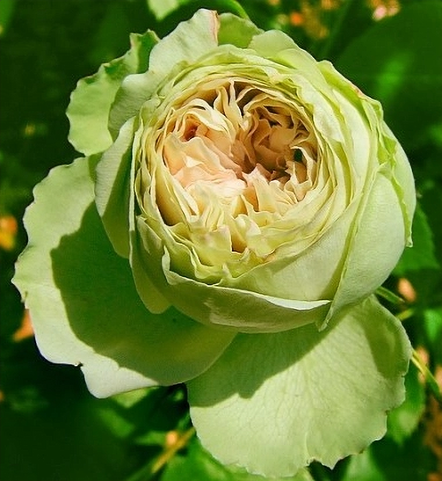Зелёная красавица роза Лавли Грин завораживает с первого взгляда своей необычной окраской. Очень крупные густо-махровые (до 80 лепестков) шаровидной формы цветки имеют бело-салатовый окрас с нежно-розовым оттенком.
