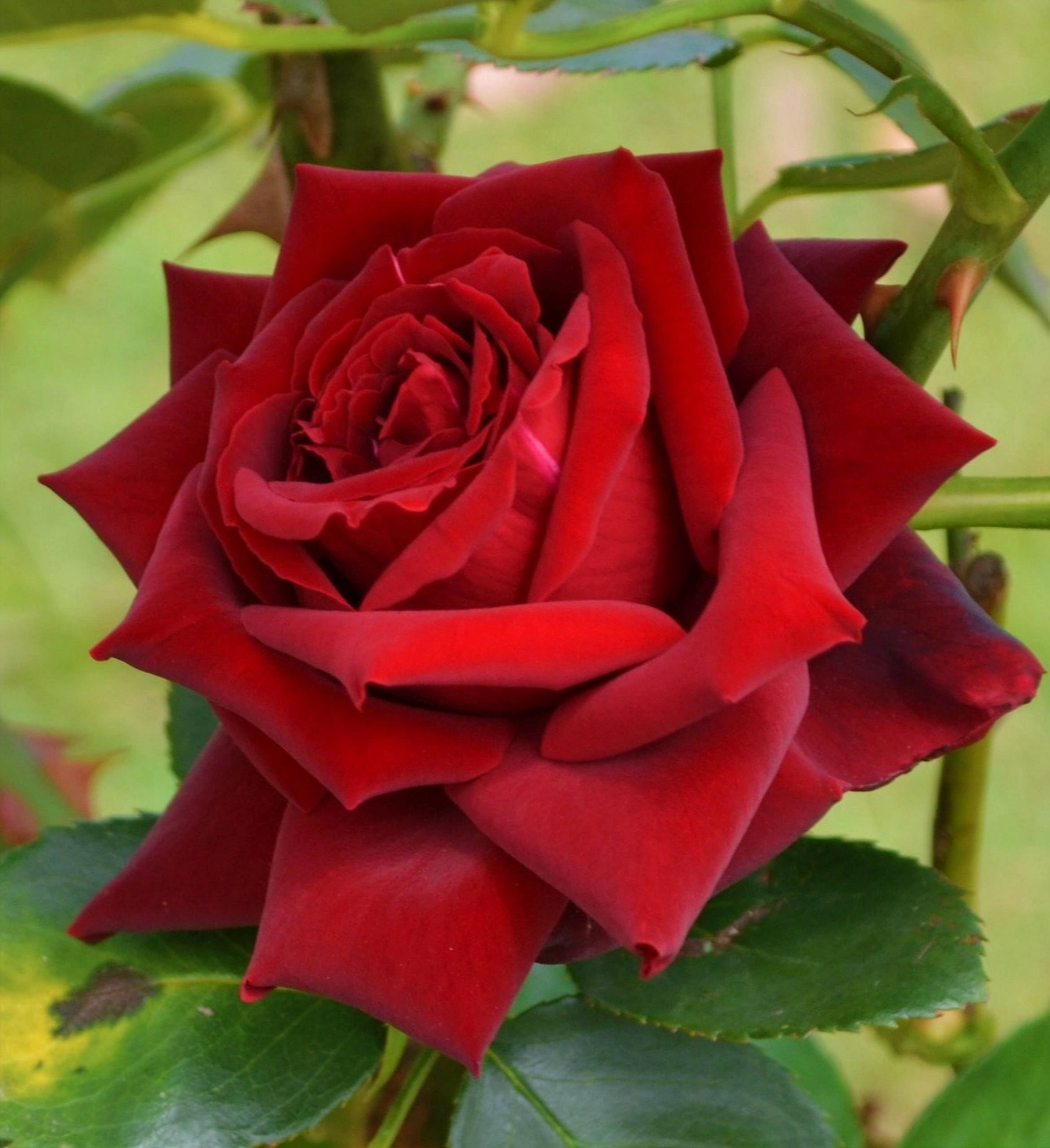 Темно-красные бархатистые лепестки закручены в классический высокий бокал. Крайние лепестки могут иметь темную опалину, благодаря которой цветок розы сорта Лавли Ред принимает более черный, изысканный вид. Бутон распускается очень плавно, при роспуске не растрепывается, сохраняя аккуратность уложенных в цветок лепестков. Из черных чайно-гибридных роз, возможно только роза Лавли Ред может выращиваться с наилучшими результатами в срезке, цветы в вазе будут стоять в свежем виде до 3-х недель, без потерь в качестве цветка. Роза Лавли Ред цветет длительное время, цветение обильное, почти непрерывное.