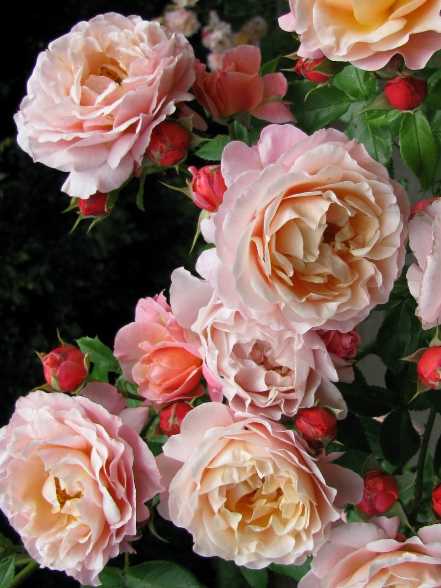 Роза Мари Кюри с красивым ветвистым кустом высотой 80-100 см и крупной темно-зеленой блестящей листвой цветет в июле-сентябре. Сорт очень устойчивый к заболеваниям и морозостойкий. Очень медоносный сорт.