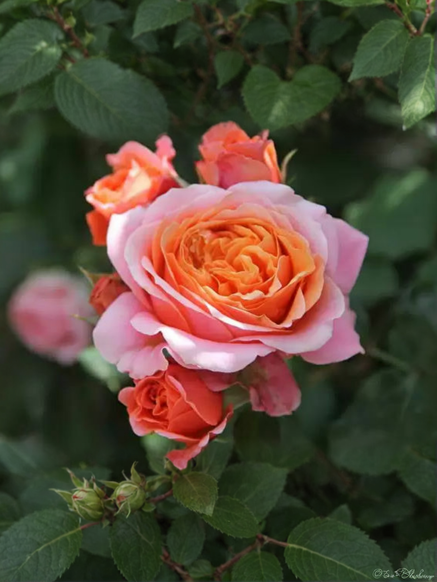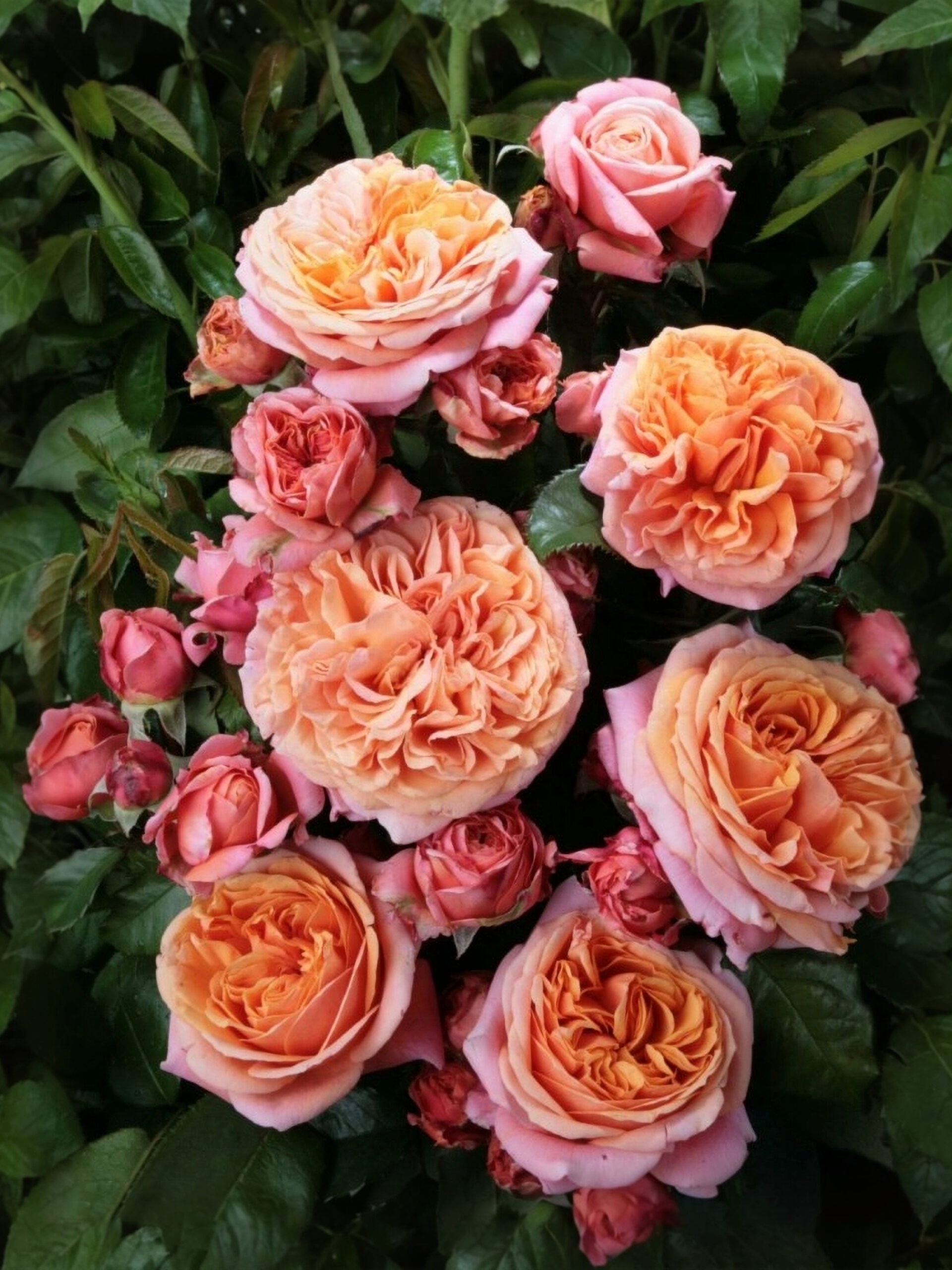 Цветы Мэри Энн имеют до 70 лепестков, растут кистью в 3-5 роз. В диаметре они от 10 до 12 см. У них приятный сладковатый аромат и нежный золотисто-оранжевый оттенок лепестков, есть малиновые переливы. Кусты в высоту достигают 90 см, а в ширину они 0,6 м. Ветви крепкие, полые. Листья у растения блестящие, темно-зеленые. При продолжительном цветении куст Мэри Энн может приобретать более раскидистую форму.