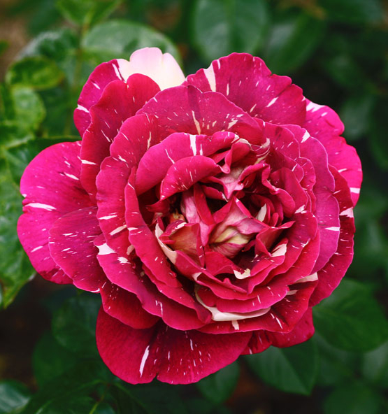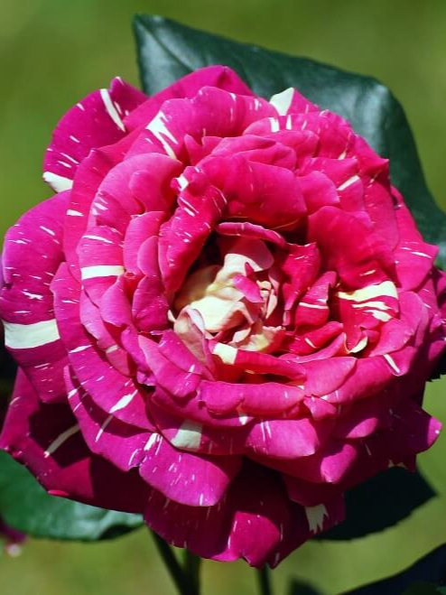 Крупные, чашевидные цветки розы Пестрая Фантазия достигают 10-12 см в диаметре. Сорт относится к махровым и насчитывает в своем бутоне до 70 лепестков. На одном стебле чаще всего бывает одно соцветие, реже ‒ несколько.