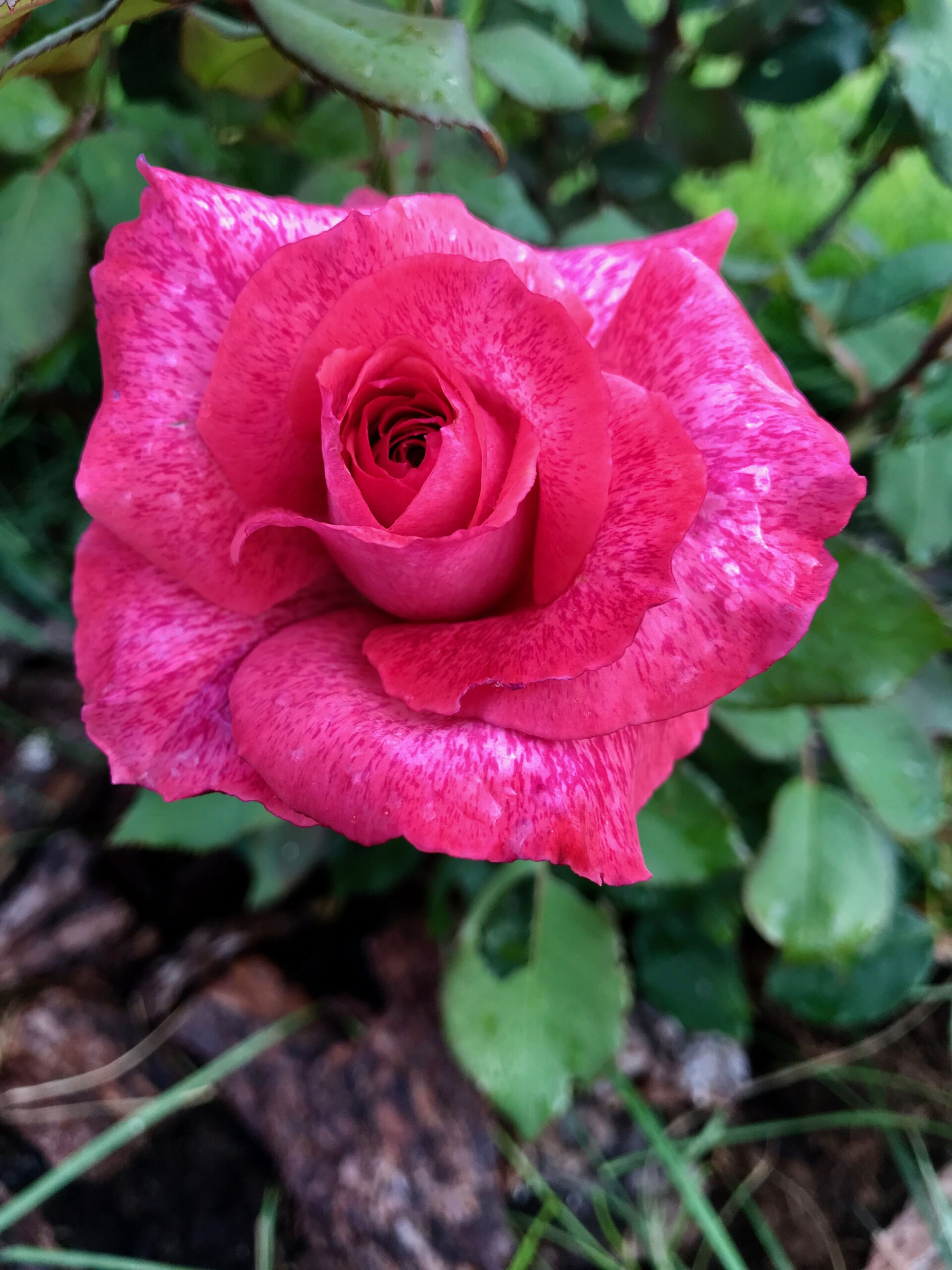 Элегантный цветок состоит из 30-35 тёмно-розовых лепестков, усыпанных звёздной пылью, бокаловидный, с высоким центром, махровый, диаметром 10 — 12 см, обладает мощным розовым ароматом с нотами зелени. Цветение обильное, непрерывное весь сезон. Куст прямостоящий, листва тёмно-зеленая, плотная, глянцевая. Устойчивость к заболеваниям высокая.