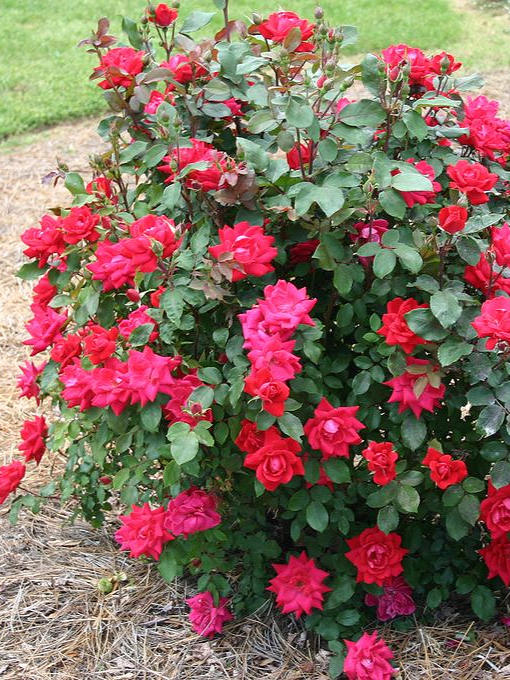 Цветы собраны в соцветия по 5-10 штук, хотя на кусте также могут встречаться одиночные цветы. Со временем, интенсивность цвета не угасает, что заметно на фоне общего изобилия цветения. Роза Пинк Нокаут радует своим обильным и продолжительным цветением на протяжении всего сезона.