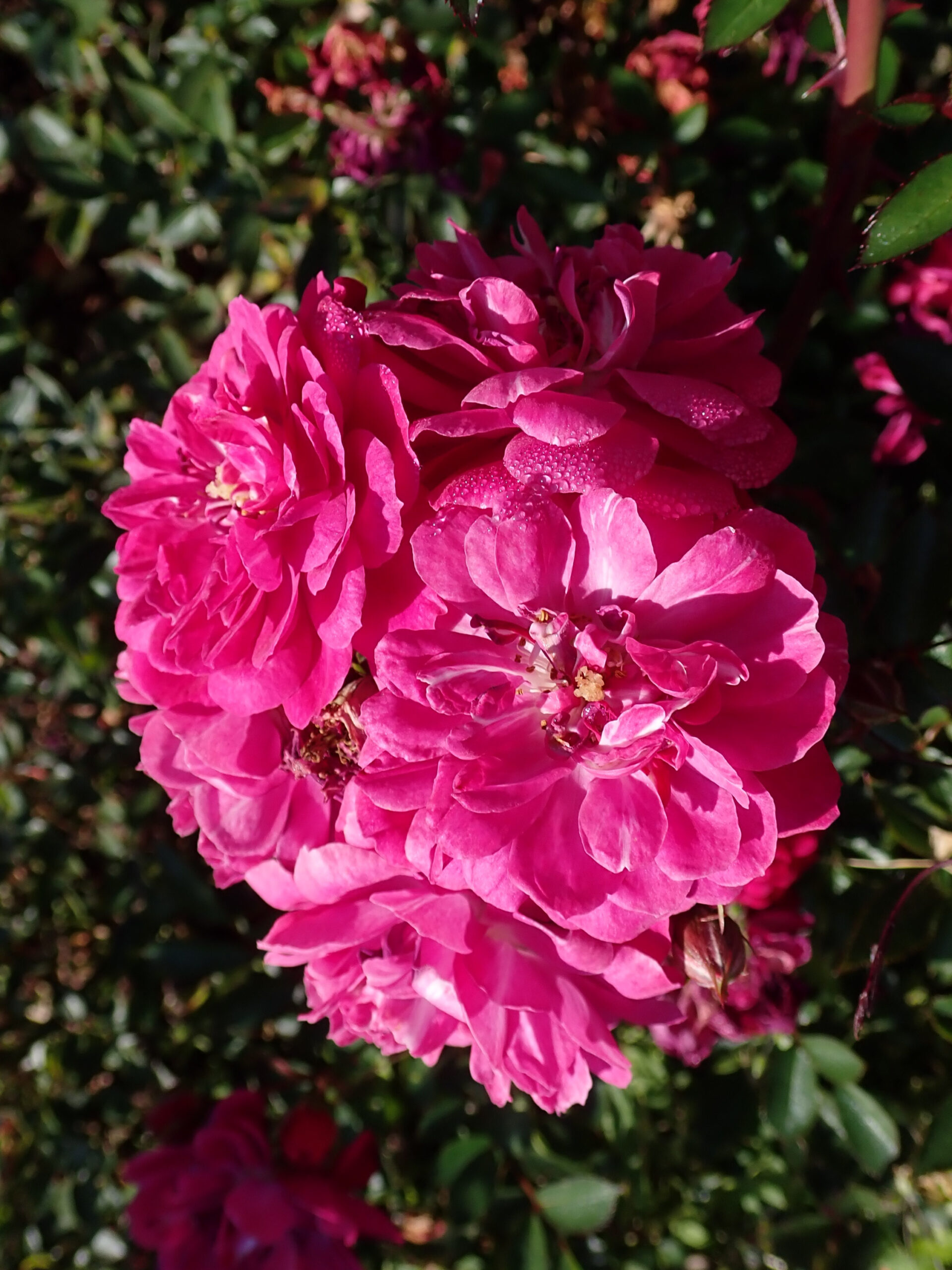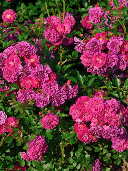 Прелестная роза с душистыми махровыми цветами. Очень эффектный цвет — розово — лиловый , который становится более насыщенным к центру. Иногда появляется сиреневый оттенок. Куст аккуратный и компактный. Не боится дождя и яркого солнца.