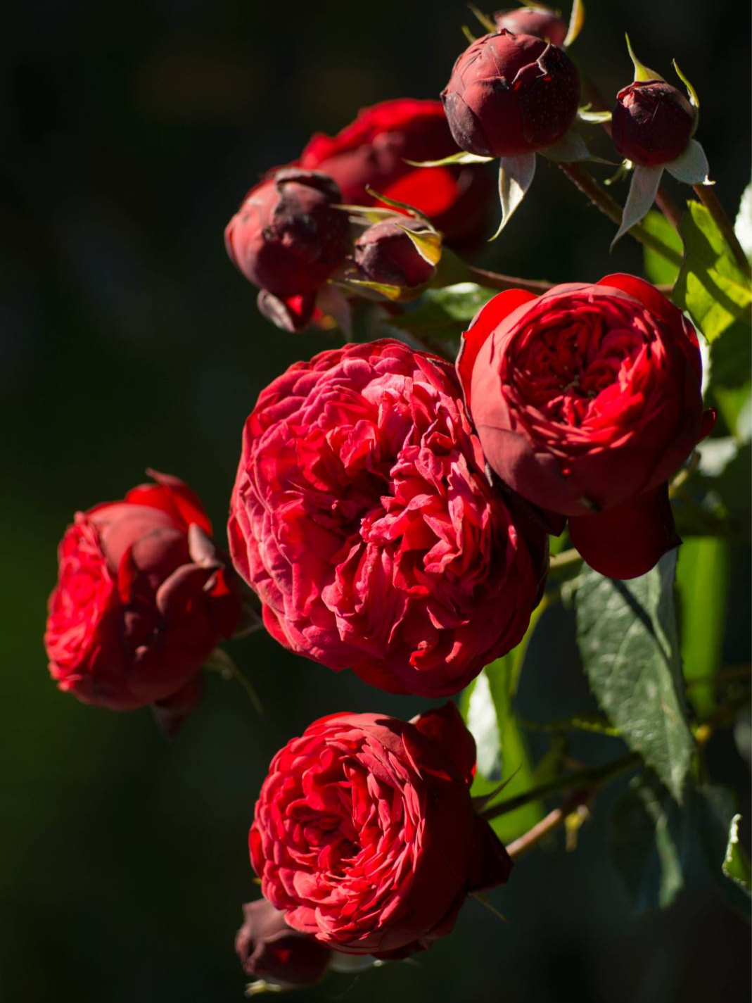 Ред Пиано — это чайный гибрид небольшой высоты (90-110, максимум 120 см), разрастающийся примерно на такую же ширину. Из-за этого он выглядит как аккуратный шар, покрытый плотной, темно-зеленой листвой с глянцевым блеском. Побеги декоративного многолетника длинные и прямостоячие. Очень красивы цветки сортового растения. В стадии бутонов они похожи на плотные миниатюрные шары, а раскрываясь, приобретают форму чаши и демонстрируют черты старинных английских роз. Центральная их часть плотно набита многочисленными лепестками, число которых в одном цветке достигает сотни. По этой причине серединку бутона не видно даже в фазе полного роспуска. Цветки данного сорта крупные (9−11 см в диаметре), махровые и собраны в кисти по 3, 5, а то и 8 штук. Их тонкий, сладостный аромат напоминает запах спелых ягод малины. Но самое главное в цветках Ред пиано — это оттенок. Его характеризуют как насыщенный красный, однако они переливаются и будто светятся изнутри. Цветение кустарника обычно довольно пышное и обильное. Соцветия появляются на нем в течение всего периода вегетации до поздней осени без перерыва. Ред Пиано довольно зимостойкая (переносит даже сильные морозы), наделена хорошим иммунитетом к разного рода заболеваниям, в том числе мучнистой росе и черной пятнистости. Ее роскошные цветы не выгорают под лучами яркого летнего солнца, не теряют своей привлекательности и формы в дождливую погоду. Розе может понадобиться подвязывание и опора на пике цветения.