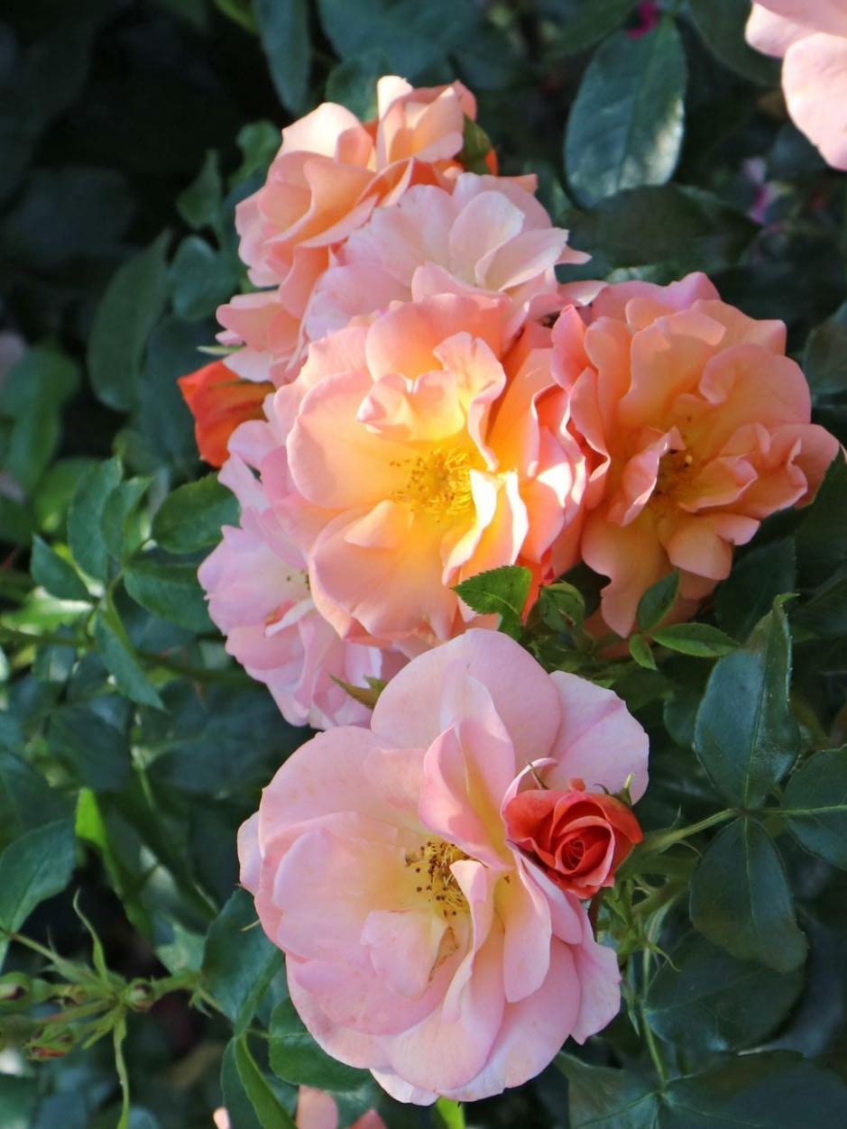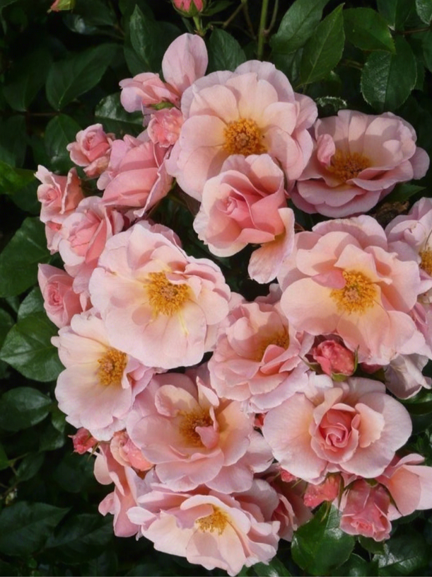 Цветки плоские, диаметром около 6 см, полумахровые (до 15 лепестков), нежно-розовые с желтовато-кремовым центром, в маленьких соцветиях. Аромат лёгкий. Цветение очень обильное, непрерывное, в течение сезона. Кусты густые, очень сильные, высотой 100-110 см, шириной 70-80 см. Листва тёмно-зелёная, полуглянцевая, высокоустойчивая к заболеваниям. Рекомендуется для живых цветущих изгородей и групповой посадки.