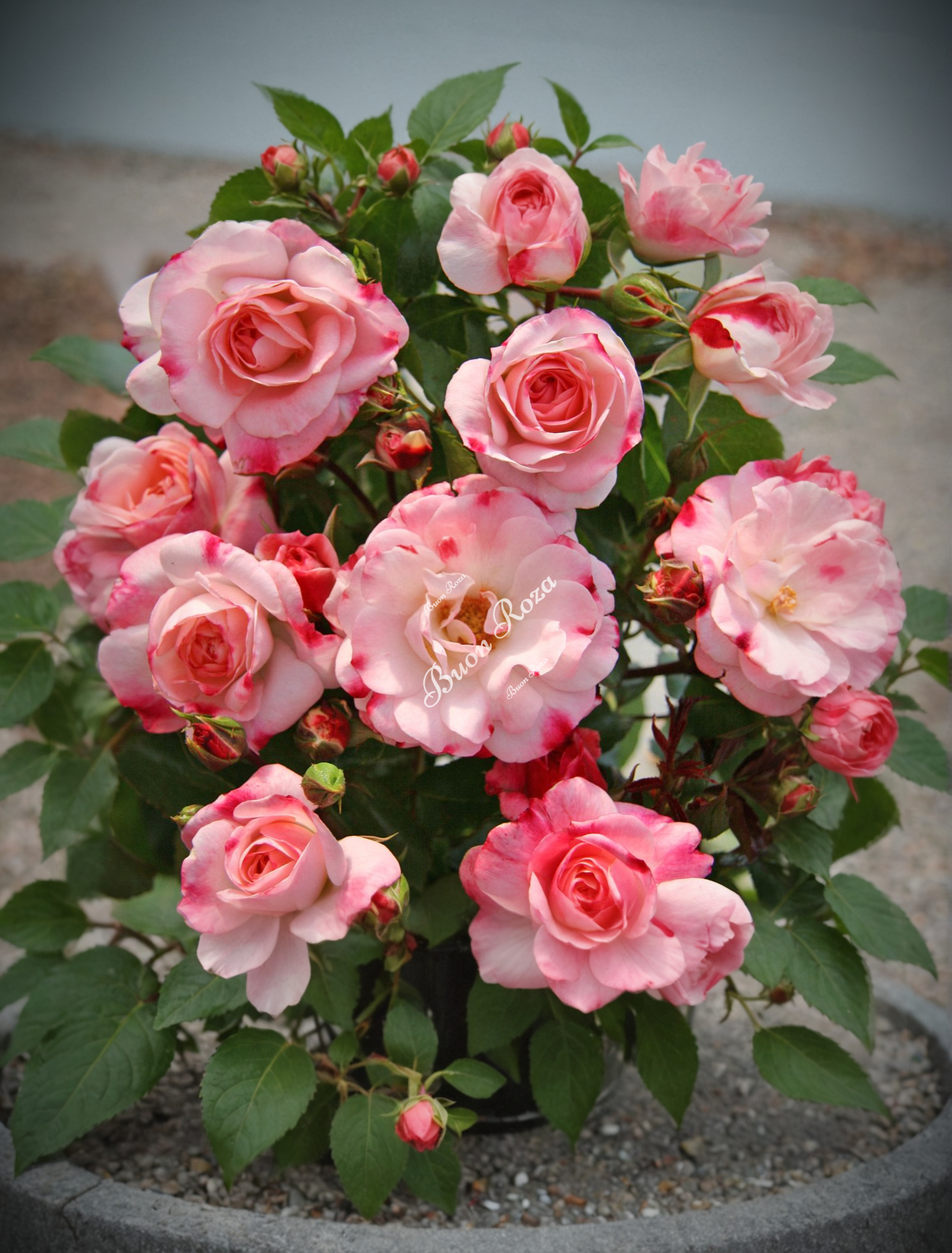Нежный красно-белый цветок представляет собой высокорослое растение с прямостоячими крепкими не поникающими побегами, вырастающими до 100-120 см. Характеризуется розовый кустарник развитой ветвистостью, незначительным количеством мелких шипов на побегах, а также густой кроной, состоящей из некрупных темно-изумрудных листьев с выраженным глянцем. Разрастается куст достаточно быстро, поэтому приобретает пышную форму – около 80 см в диаметре.