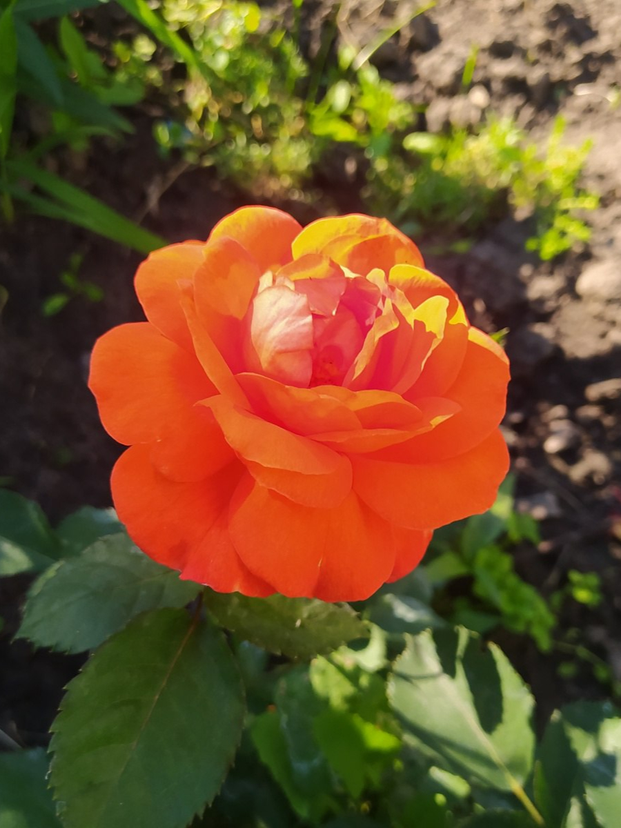 Ее предназначение – штамбовая форма. Бутон имеет оранжево-красный окрас, даже с медным оттенком. Бутон отличает бокаловидная форма, а цветок – чашевидная, с высоким центром. В диаметре цветок достигает 9 см. По количеству лепестков он считается махровым (если быть точнее, умеренно махровым, всего лепестков до 25 штук). Цветки располагаются в соцветиях. Аромат у сорта слабый, нежный, легкий.