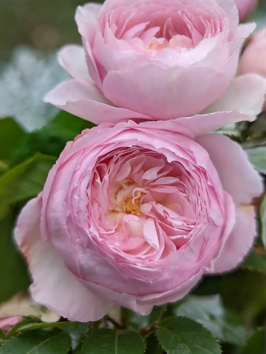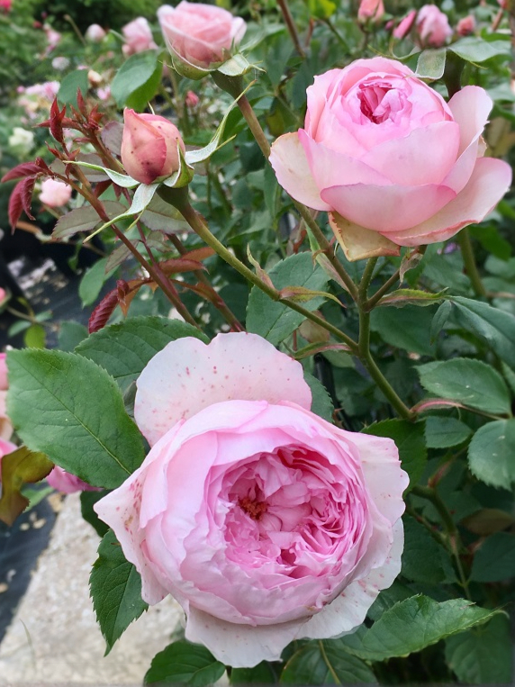 Цветет множеством аккуратных цветков, собранных в изящные соцветия. Цветы глубоко чашевидные со множеством лепестков, которые закрыты и красиво расположены вокруг центрального узла тычинок. Первоначально они тепло розовые, с оттенком до сиренево-розового, есть тонкий, почти заметный карминовый розовый край по краю лепестка. Когда цветки открываются, особенно в солнечную погоду, они быстро бледнеют до светлого, кремово-розового цвета.