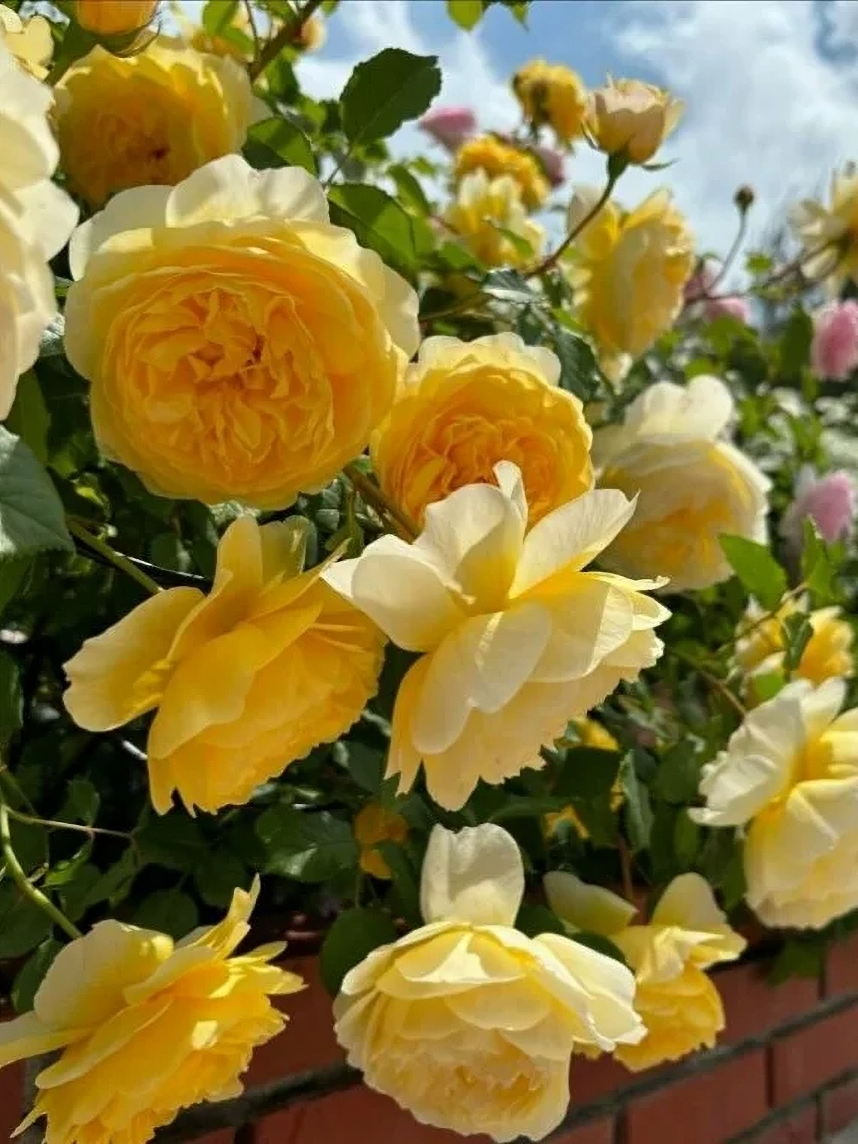 Роза селекции Остина с цветами невыгорающего насыщенного желтого цвета. Цветки диаметром 10-12 см, махровые, в старинном стиле, с насыщенным ароматом, в котором явно прослеживаются лимонные нотки, причем с возрастом цветка к ним добавляется сладость, а сам аромат становится еще сильнее.