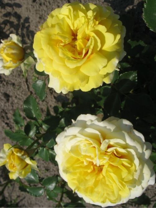Жёлтые цветки диаметром около 8 см, при полном раскрытии показывают на основании лепестков тёмно-красное пятно, указывающее на персидское наследие этого сорта (via R. Persica); на солнце цвет выгорает до лимонно-сливочного. Цветение в соцветиях, обильное, повторное. Куст компактный, ветвистый, с тёмно-зеленой, полуглянцевой листвой среднего размера, обладающей высокой устойчивостью к заболеваниям.