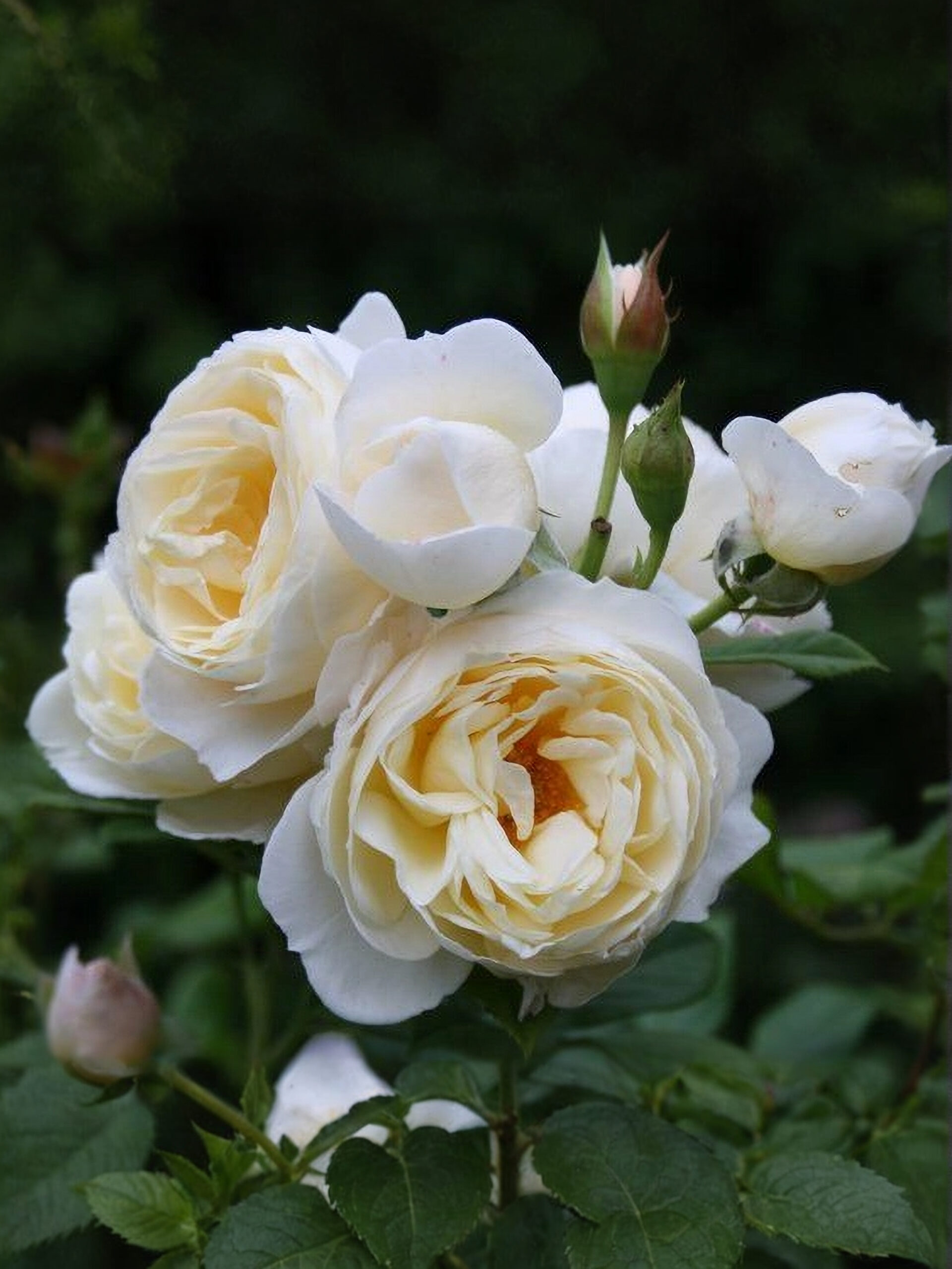 Ютерсен Клостеррозе представляет собой бело-кремовые розы с тычинками, расцветка которых, в свою очередь, напоминает позолоту. Основной цвет бутона – кремовый, цветонасыщенность считается бледной. Двухцветность у этих роз практически полностью отсутствует, по форме цветок похож на шаровидный венчик. По диаметру он считается крупным: держится в пределах 10 см. По численности лепестков цветок данного сорта относят к махровым. Розочки расположены в соцветиях, в каждом из которых в среднем по 4 бутона. По количеству цветков в соцветиях растение считается малоцветковым.