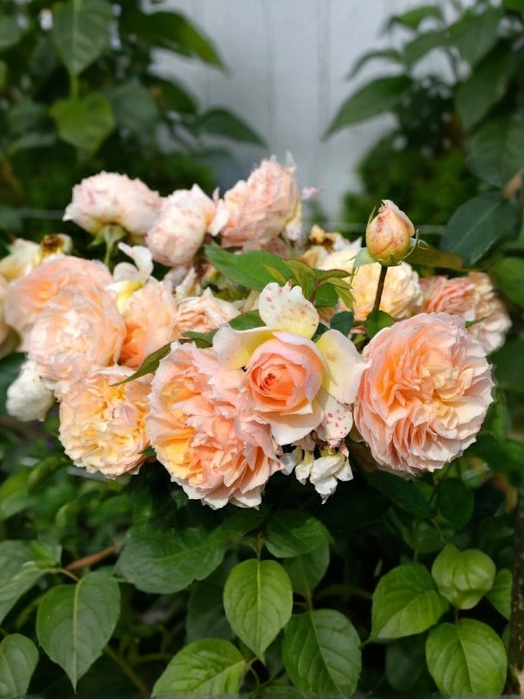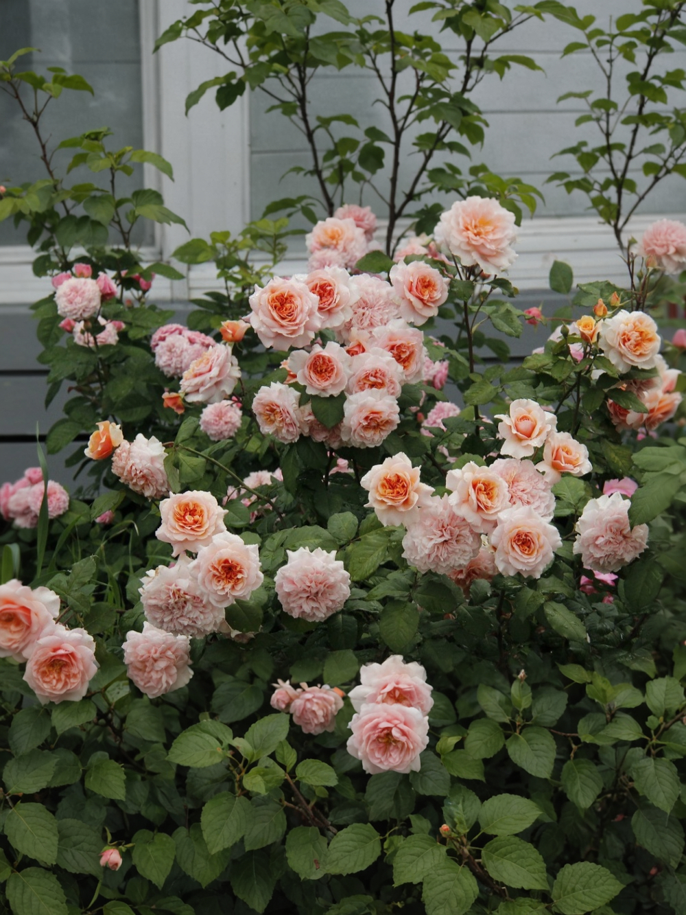 Роза Версайни представляет собой прямостоячий куст, который в благоприятных условиях вытягивается в высоту до 120-140 см. Характеризуется растение обильной ветвистостью гибкими и крепкими ветвями, умеренной облиственностью темно-зелеными листьями с выраженным глянцем, слабой шипованностью побегов и развитым корневищем. Объем куста обычно составляет 70-80 см. Особенностью растения является расположение ветвей, которые свисают дугами, что придает розовому кустарнику необыкновенно аккуратный и привлекательный вид. На каждом стебле формируется 5-6 цветков, красиво собранных в соцветия.