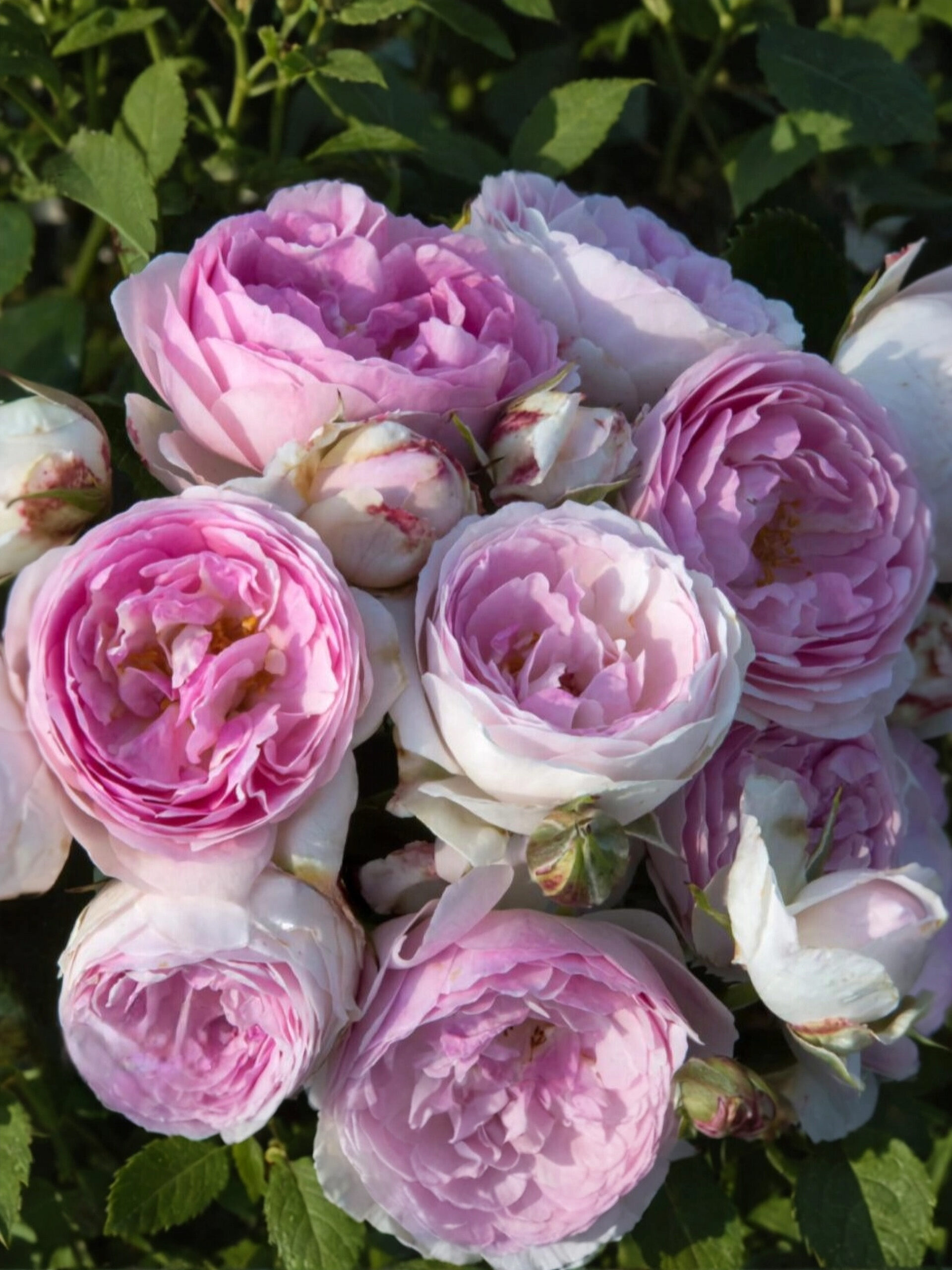 Розы имеют несколько преимуществ перед другими сортами. Прежде всего это выразительные соцветия маленьких цветков, которые располагаются на стеблях по 3-5 штук. Каждый цветок состоит из 90 лепестков, что делает его очень пышным и густомахровым. Бутон имеет шаровидную форму, а диаметр самого цветка составляет от 7 до 9 сантиметров.