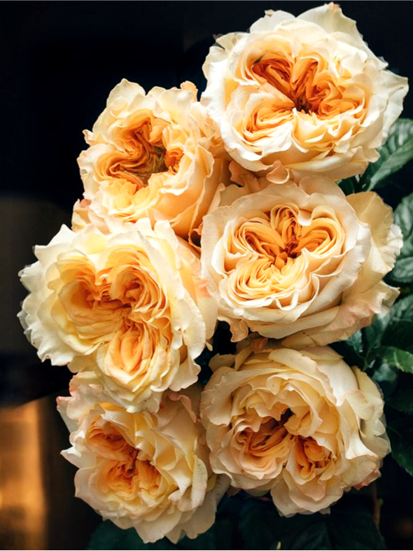 Это настоящая садовая роза с красивым мягким персиковым оттенком. Цветки густомахровые с множеством мелких лепестков крупные с диаметром цветка 10 см с мягкими оттенками апельсина переходящие в лососевые оттенки.