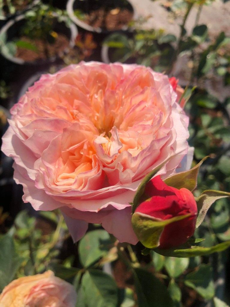 Окраска бутона этого сорта розы является розовой, а цветок имеет теплый градиент от оранжевого до розового и кораллового. Размер цветка крупный, диаметр составляет от 10 до 12 см. Тип цветка по количеству лепестков густомахровый, их число может достигать до 100 шт. на одном цветке.