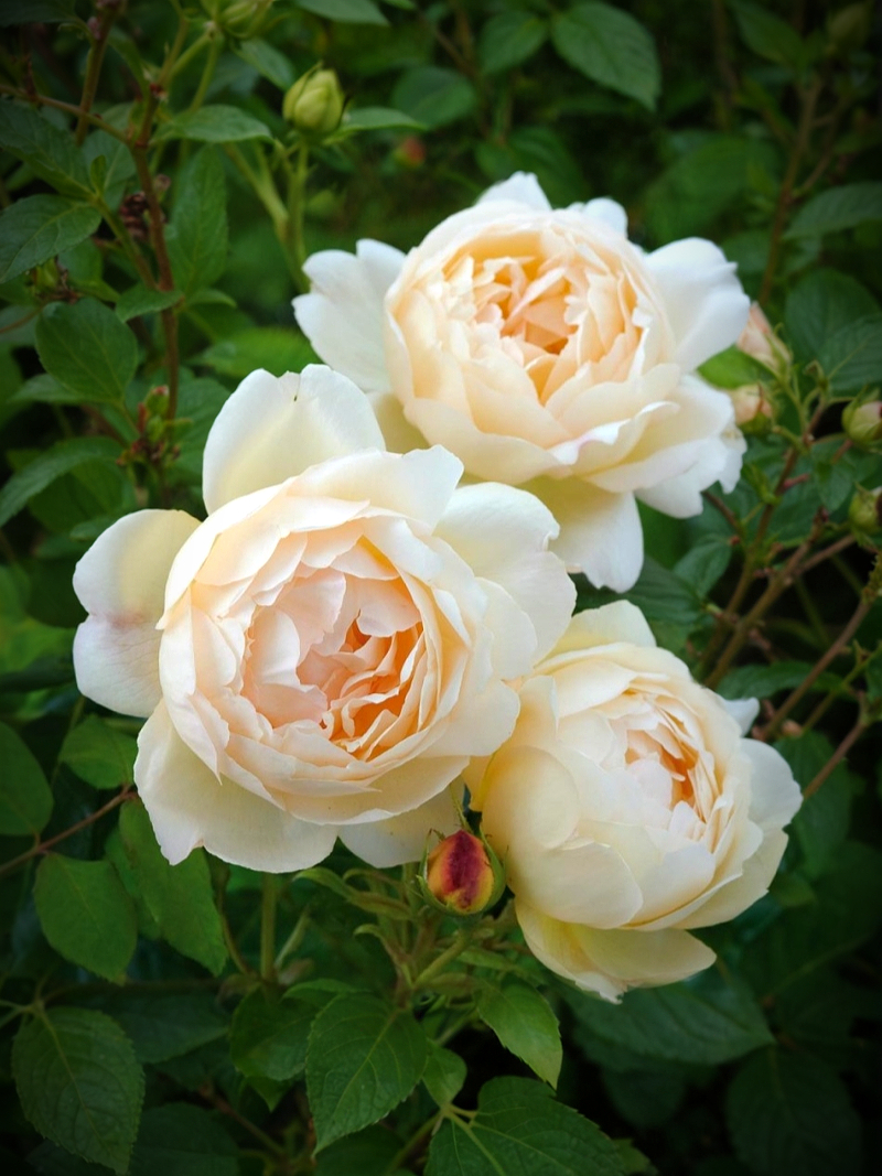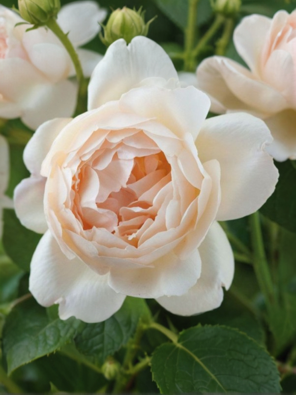 Одна из самых душистых английских роз с сильным, характерным ароматом мирры. Цветки махровые, вначале цвета сливочного масла, затем нежного кремового цвета. Даже когда цветы полностью открыты, они сохраняют свою красивую округлую чашевидную форму. Кусты почти пряморослые, густые, с многочисленными побегами, идущими из земли. Высота 150 см и ширина 90 см, при выращивании на опоре может достигать высоты 240 см. Благодаря своей нежной окраске, эта роза очень легко сочетается с широким спектром растений другой цветовой гаммы.