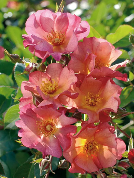 Роза этого сорта имеет много преимуществ, которые делают ее отличным выбором для любого садовода. Она обладает яркой окраской цветка – медно-охровый цвет со вставками красных тычинок на желто-розовом фоне. Это создает очень эффектный вид и привлекает внимание всех прохожих.
